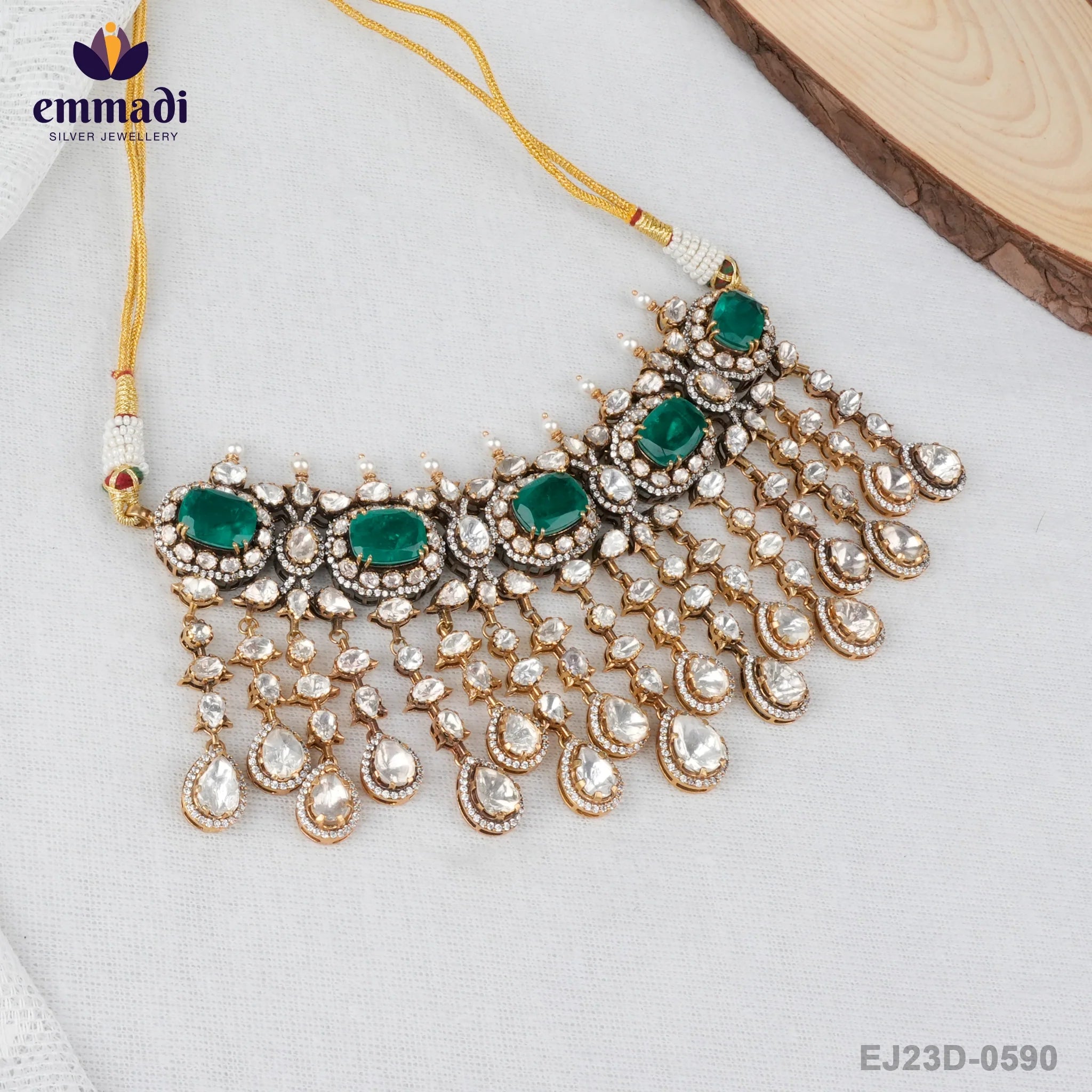 - Pure Gold Plating: The Victorian Green Choker is adorned with pure gold plating that gives it a luxurious and radiant look. The gold plating adds an extra layer of richness to the choker, making it a truly special piece of jewelry.