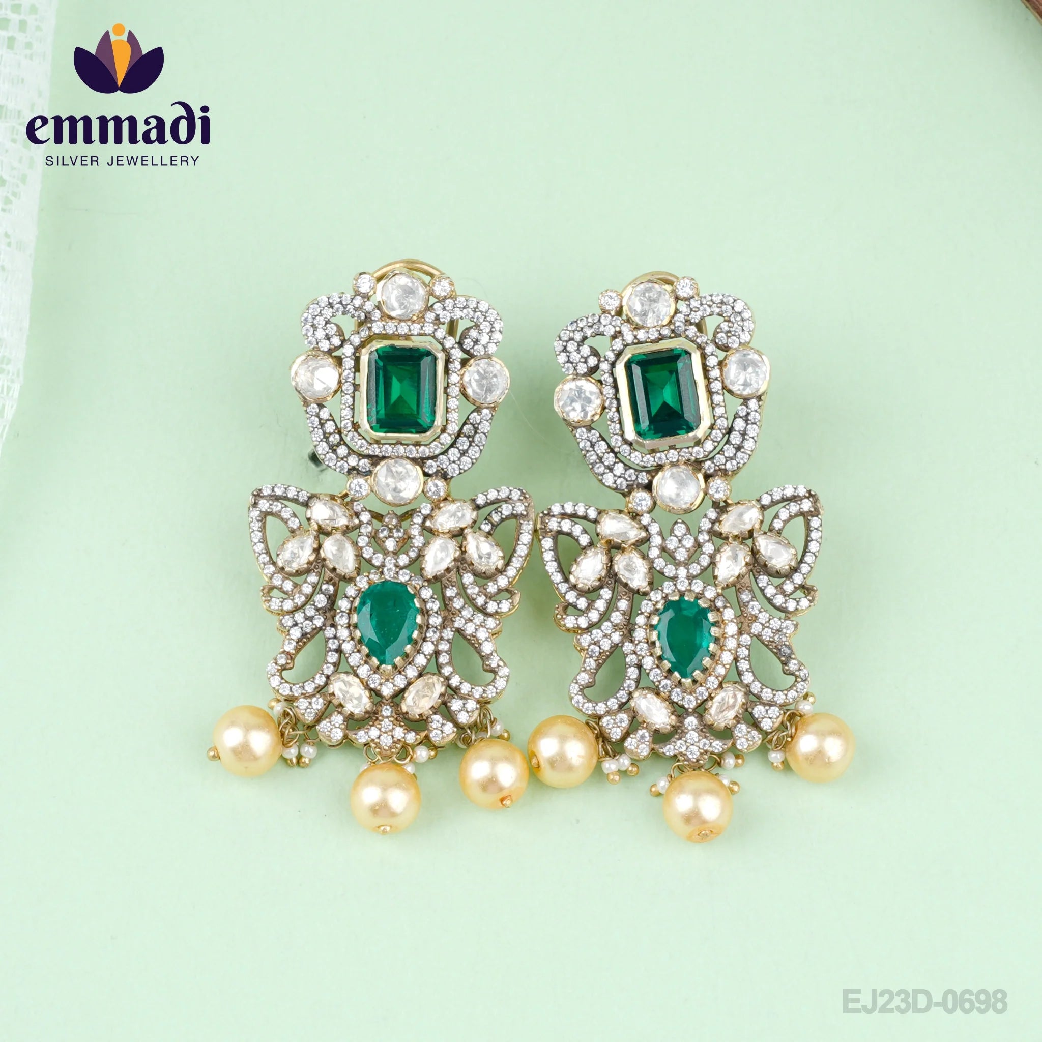 Indulge in luxury and elegance with the Hangings Victorian Green from Emmadi Jewellers. Make a statement and add a touch of glamour to your look with these exquisite handcrafted earrings.