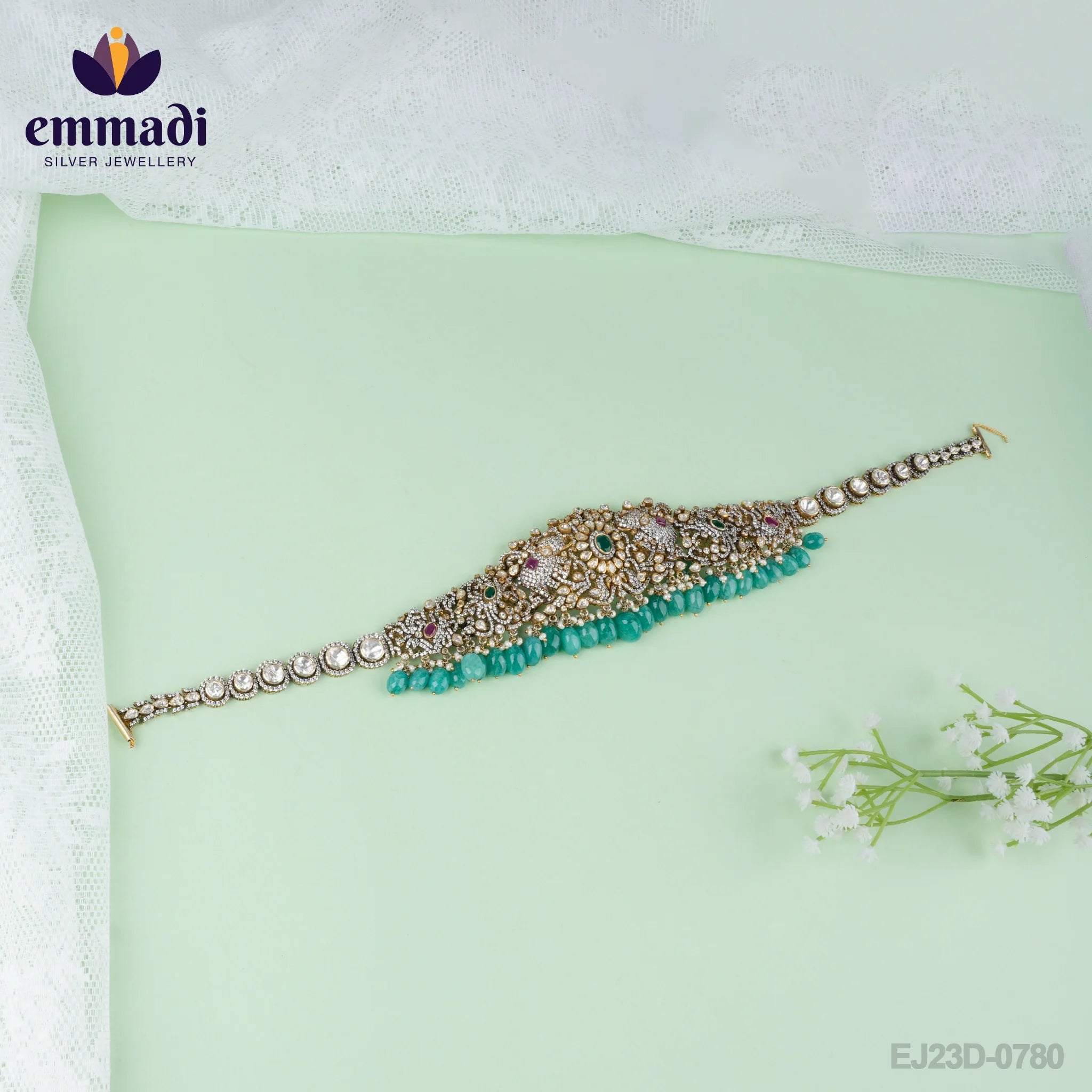 Emmadi Jewellers presents the exquisite Vaddanam Victorian Multi collection, featuring intricately designed jewelry pieces crafted with 92.5% silver and adorned with pure gold plating. Each piece in this collection is a true masterpiece, showcasing a blend of traditional Indian craftsmanship with a modern Victorian twist.