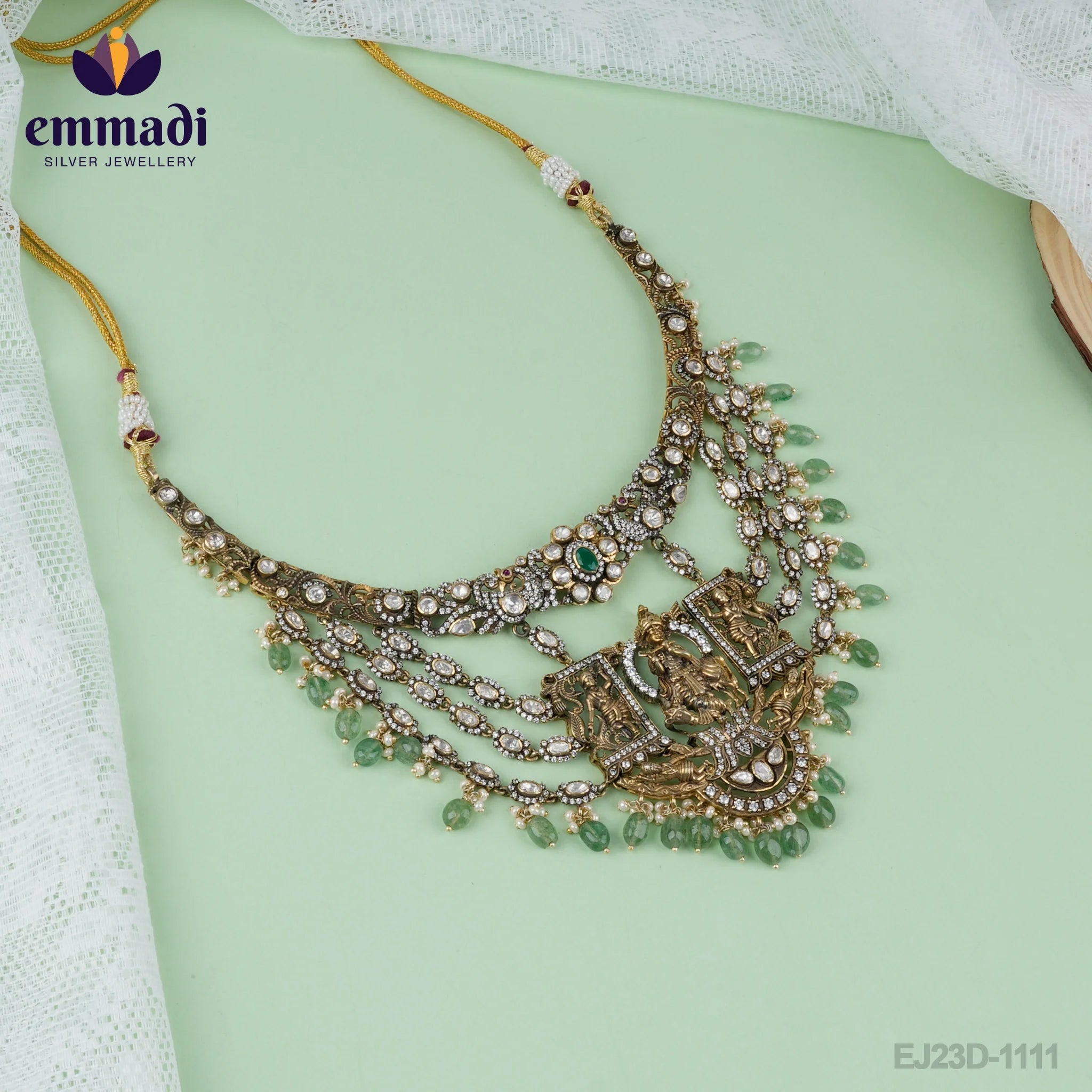 Experience the luxury and elegance of handcrafted jewelry with Nirajas, where tradition meets modern design in every piece. Add a touch of glamour to your collection with the exquisite Victorian multi necklace from Emmadi Jewellers.