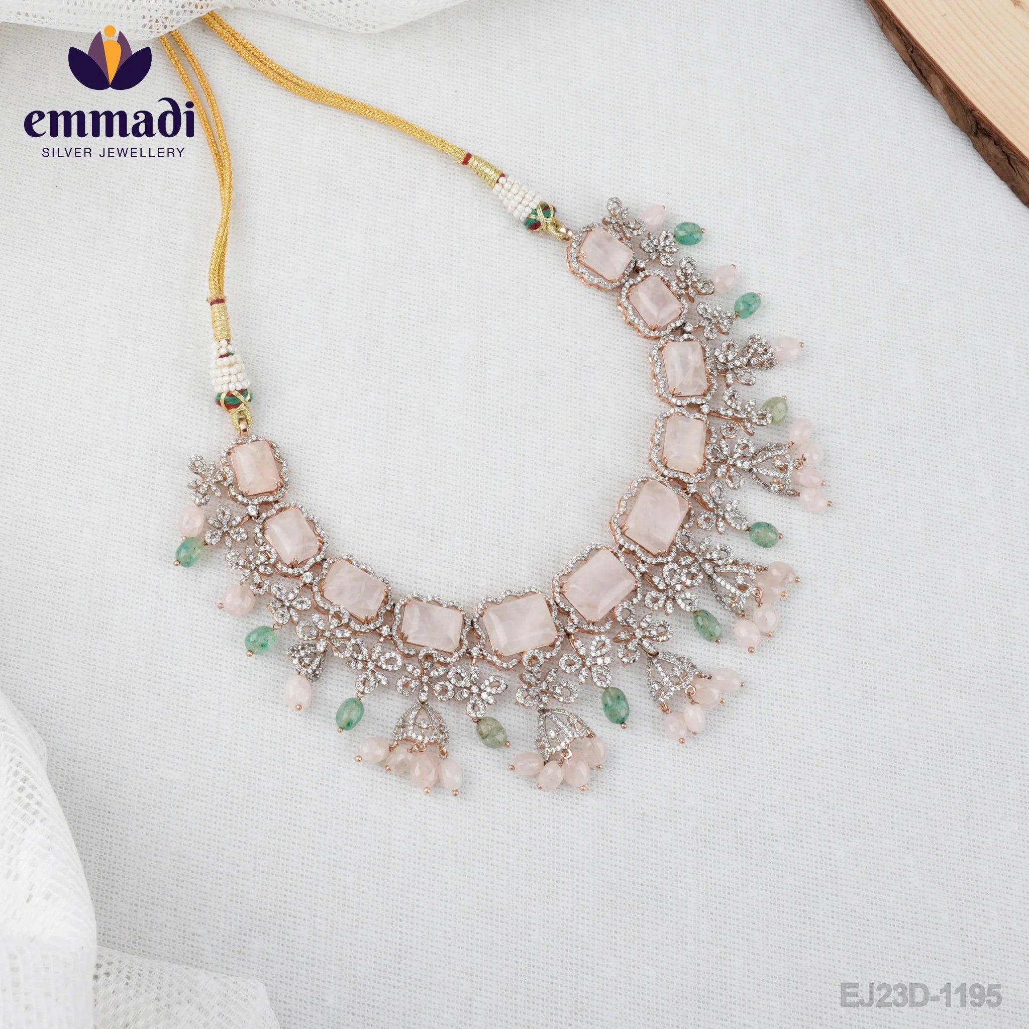 Welcome to Sakshi's Exquisite Indian Jewellery, where traditional craftsmanship meets modern elegance. Our Two Colour Stones Pink Necklace is a masterpiece of fine artistry and premium quality materials, perfect for adding a touch of glamour to any outfit.