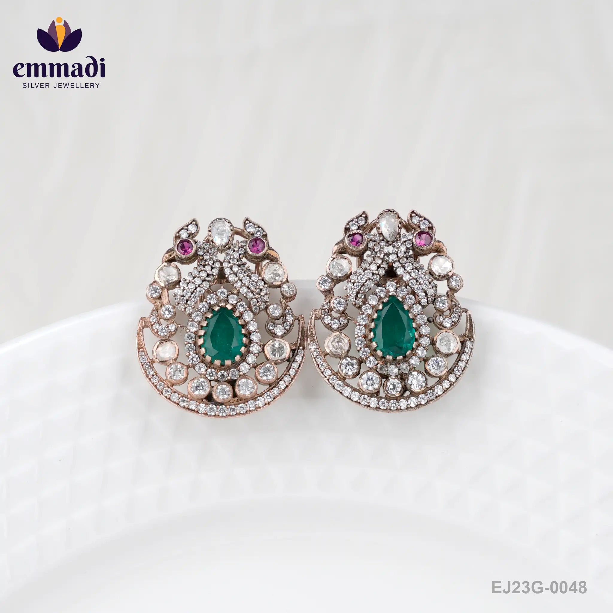 Indulge in the opulence of Raagavi Victorian Green Studs, exquisitely crafted by Emmadi Silver Jeweller, India's Largest silver brand. Elevate your style with these elegant green earrings that effortlessly blend Victorian charm with modern sophistication. Adorn yourself with these exquisite studs to add a touch of luxury to your ensemble.