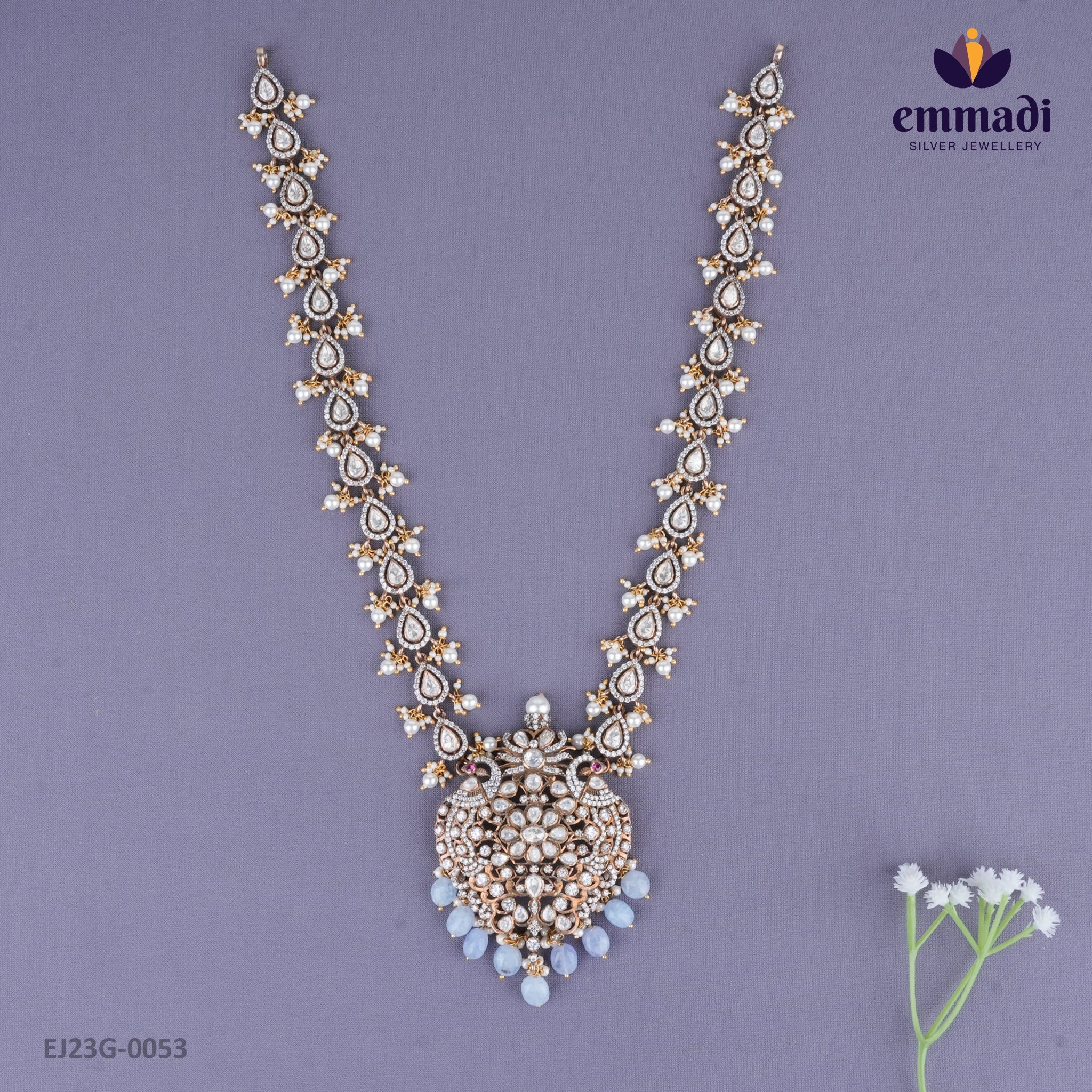 Indulge in the grandeur of the Rajmati Victorian Pink Long Necklace, a true epitome of elegance from Emmadi Silver Jeweller, India's Largest silver brand. Crafted with meticulous attention to detail, this exquisite piece exudes sophistication and grace. Elevate your look with this opulent necklace that effortlessly blends tradition with contemporary style. Make a bold statement and adorn yourself with the timeless charm of the Rajmati Victorian Pink Long Necklace.