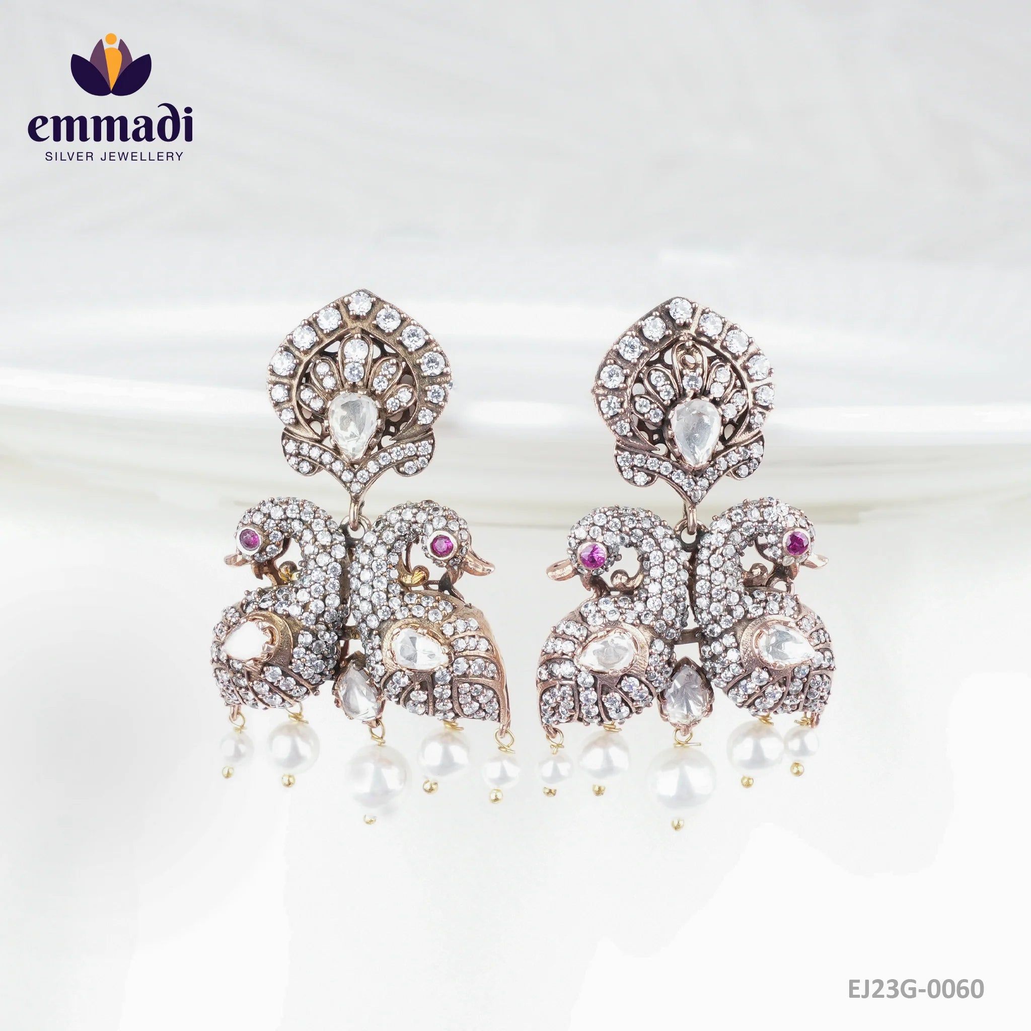 Step into elegance with the exquisite Rangini Victorian Pink Hangings by Emmadi Silver Jeweller. Adorn yourself with these stunning pink earrings and let your style speak volumes. Elevate your look to pure sophistication with these luxurious statement pieces.