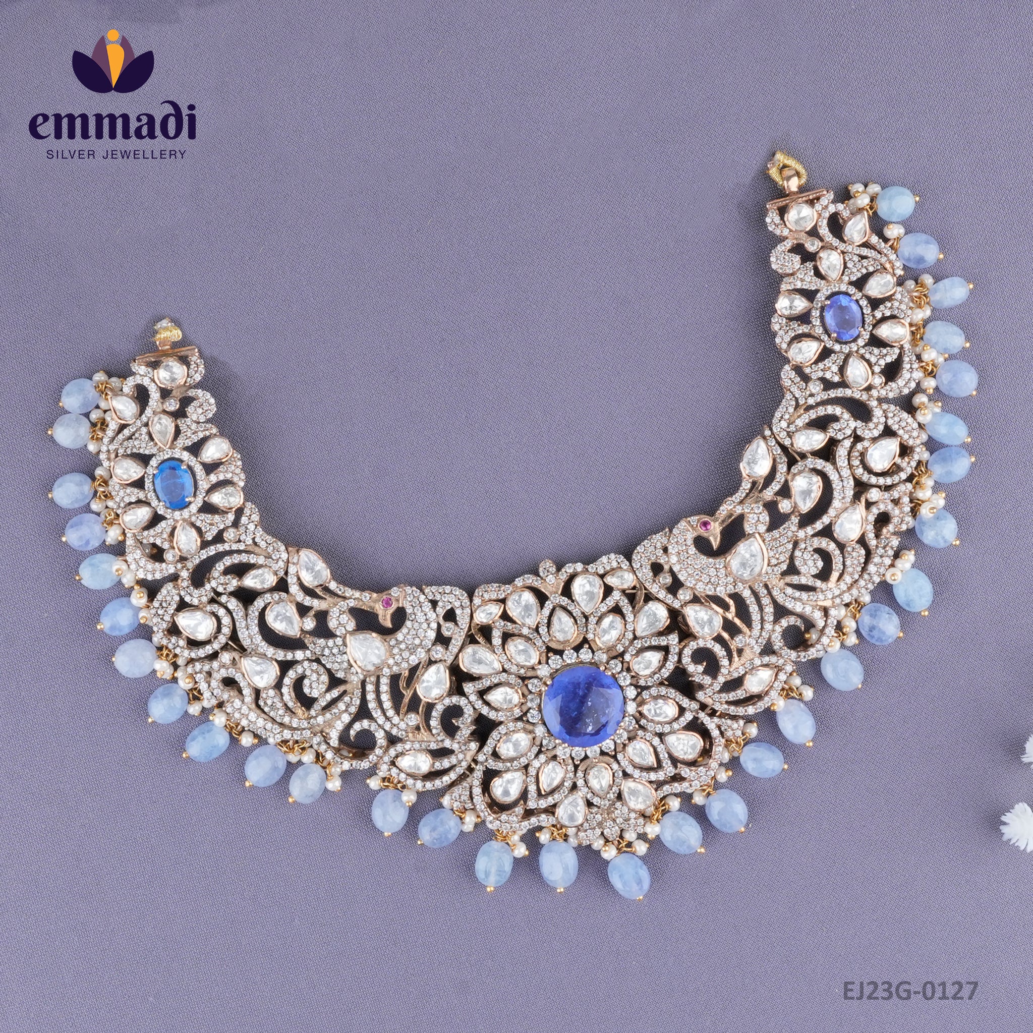Indulge in the opulence of the Saruchi Victorian Multi Necklace, a lavish piece from Emmadi Silver Jeweller, India's Largest silver brand. Elevate your look with this exquisite necklace that exudes Victorian charm and sophistication. Crafted with precision and adorned with intricate detailing, this necklace is a stunning statement piece that will make you feel like royalty. Enhance your ensemble and exude elegance with the timeless beauty of the Saruchi Victorian Multi Necklace.