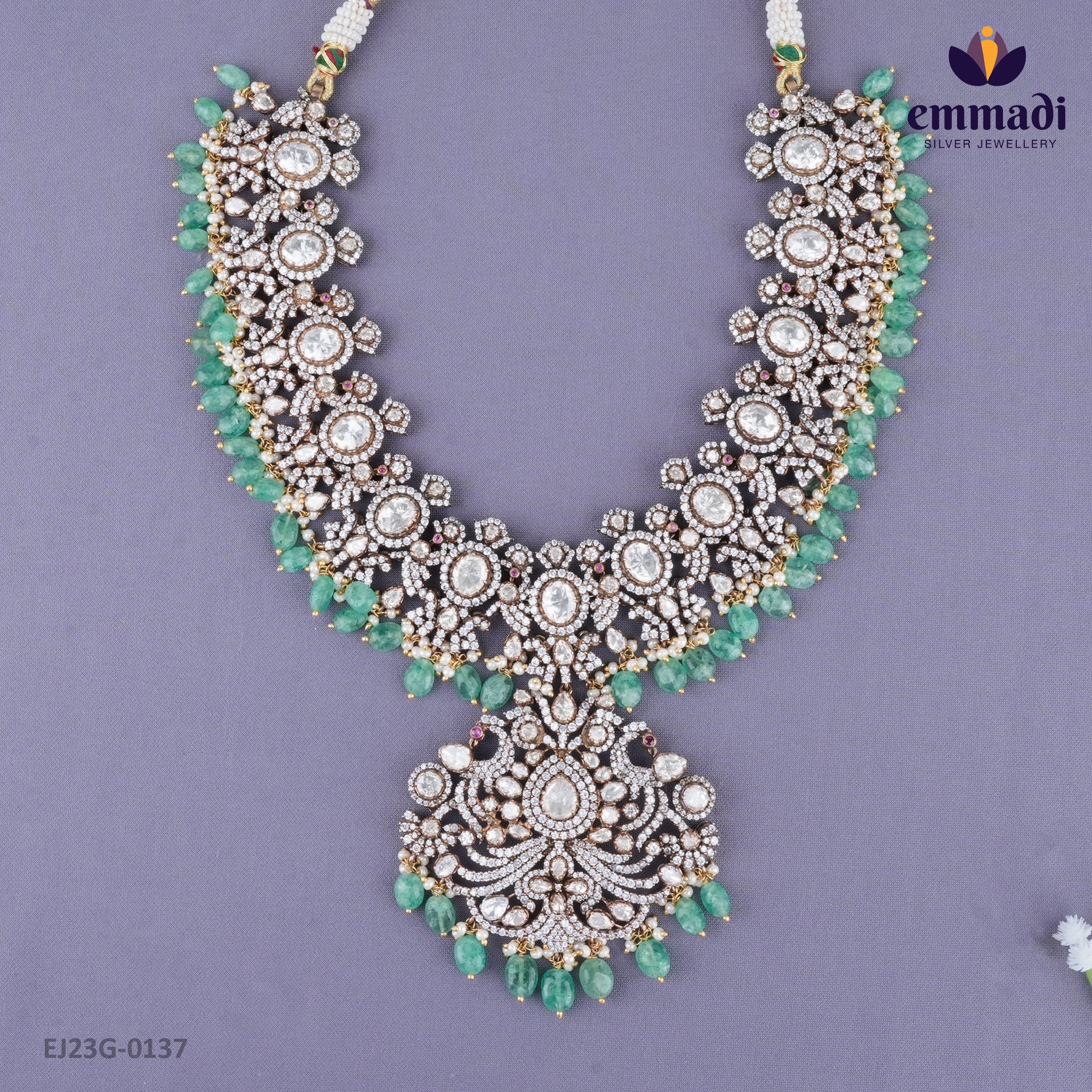 Indulge in elegance with the Sephali Victorian Pink Long Necklace by Emmadi Silver Jeweller, India's Largest silver brand. This exquisite piece effortlessly combines vintage charm with a touch of modern sophistication. Adorn yourself with this majestic necklace that is sure to elevate any ensemble to new levels of luxury. Experience the allure of timeless beauty with every wear of this stunning creation.