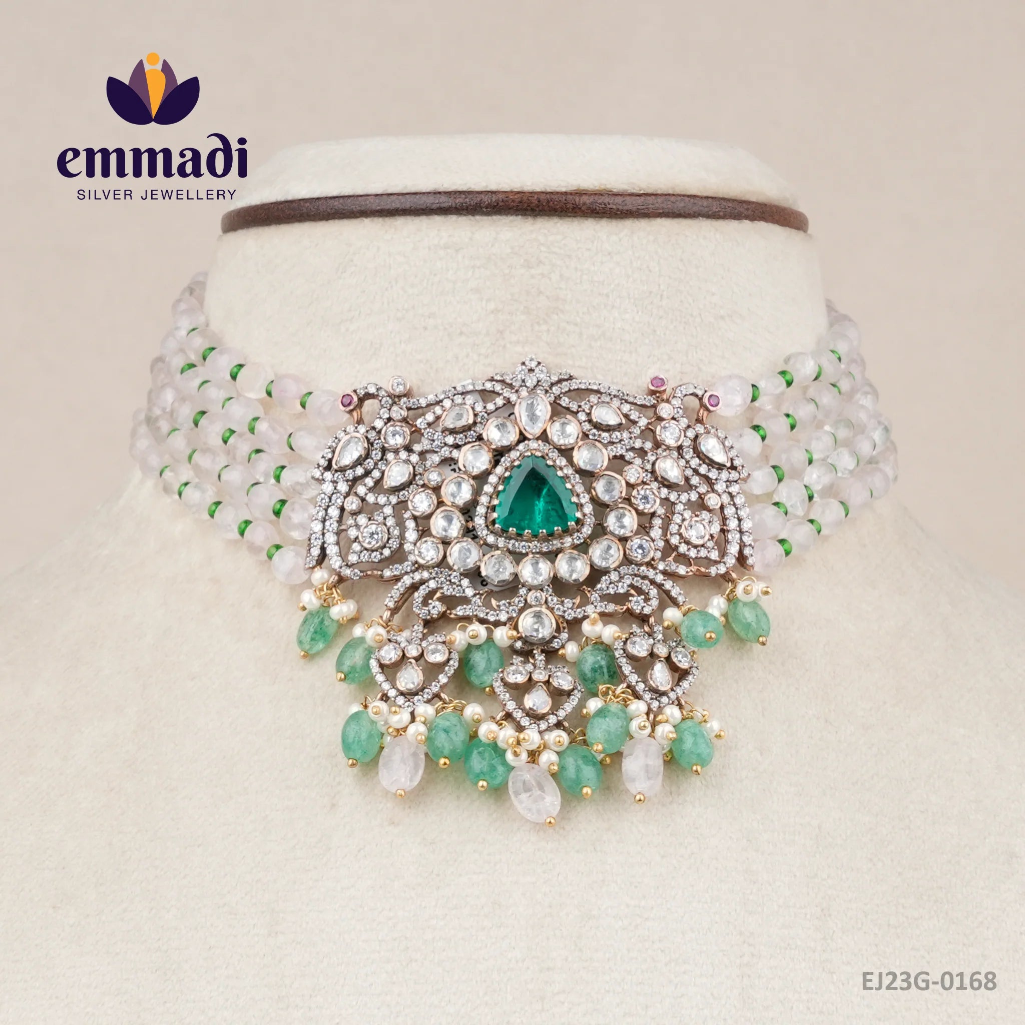 Indulge in the opulence of the Sugauri Victorian Multi Choker, a breathtaking statement piece crafted for those with a taste for luxury and elegance. Exquisitely designed by Emmadi Silver Jeweller, India's Largest silver brand, this choker radiates sophistication and charm. Elevate your ensemble with this stunning accessory that embodies timeless beauty and refinement. Ideal for adding a touch of regal glamour to any outfit, the Sugauri Victorian Multi Choker is a must-have for those who appreciate the finer things in life.