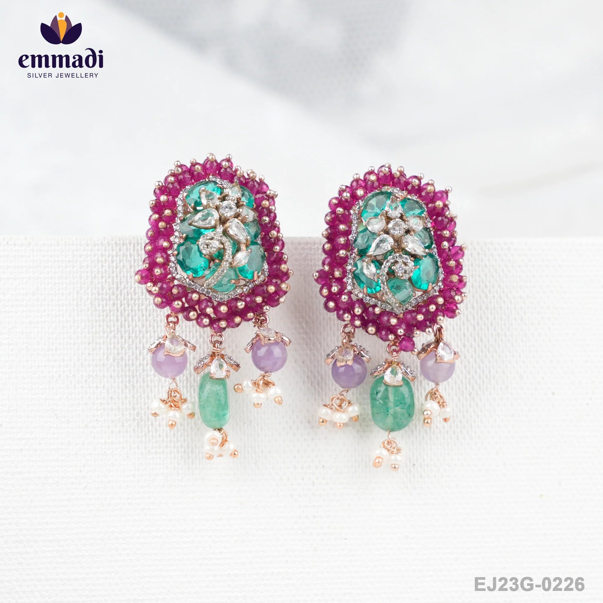 The Two Colour Stones Multi Ear Tops/Studs are versatile and can be paired with both traditional Indian attire and modern western outfits. Whether you're attending a wedding, festival, or simply looking to add a touch of glamour to your everyday look, these earrings are the perfect accessory.