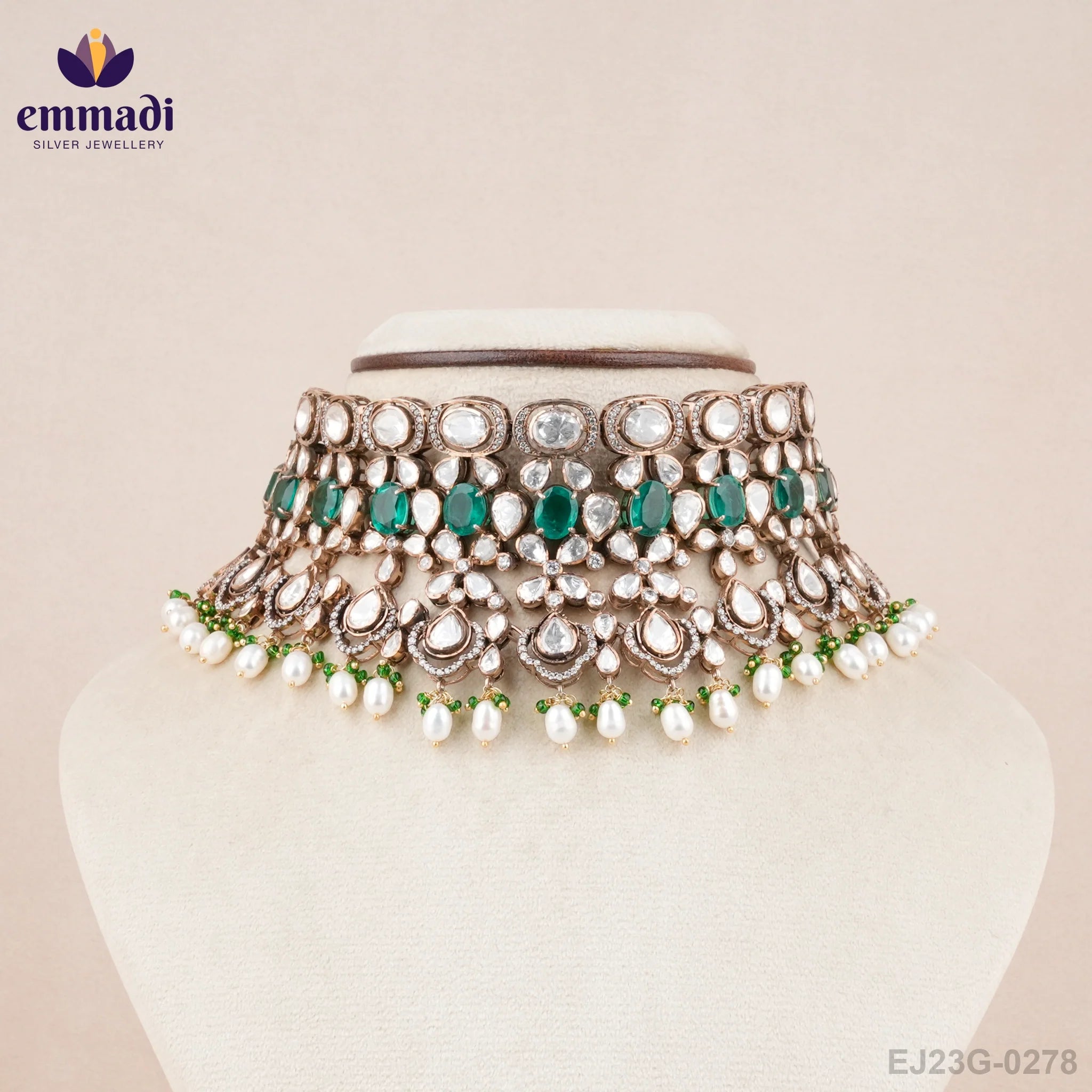 Step into the world of elegance with the Tavishi Victorian Green Choker by Emmadi Silver Jeweller, India's Largest silver brand. This exquisite choker exudes Victorian charm with its intricate design and verdant green hue. Elevate your style with a touch of luxury and make a statement wherever you go. Adorn yourself with the beauty of the past while embracing the sophistication of the present. Unleash your inner aristocrat with the Tavishi Victorian Green Choker - a timeless piece for the modern-day royalty.