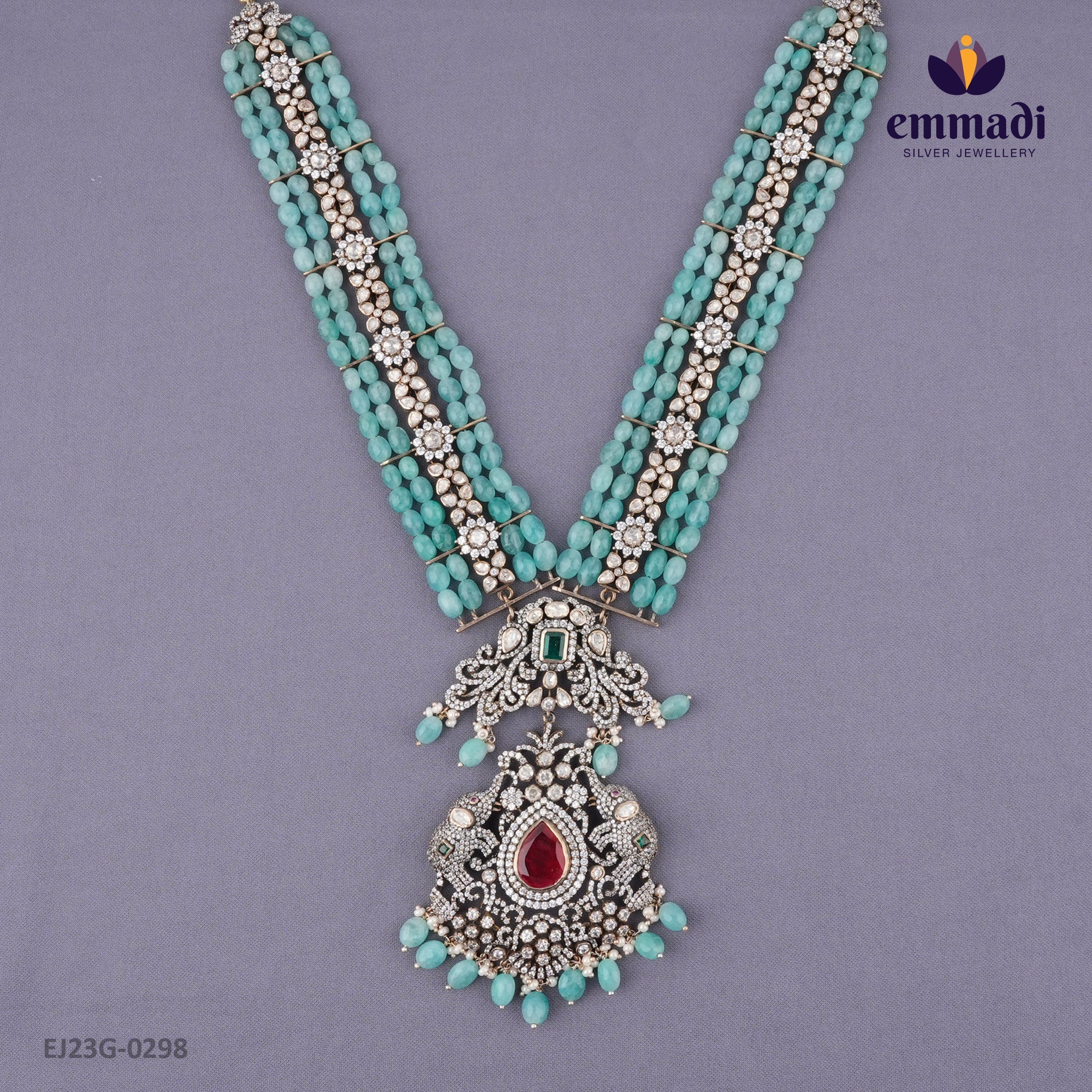 Indulge in opulence with the Triguni Victorian Multi Long Necklace from Emmadi Silver Jeweller, India's Largest silver brand. Elevate your style with the intricate detailing and elegance of this exquisite piece. Adorn yourself with grace and sophistication, making a statement wherever you go. Embrace luxury and stand out from the crowd with this stunning Victorian-inspired necklace.