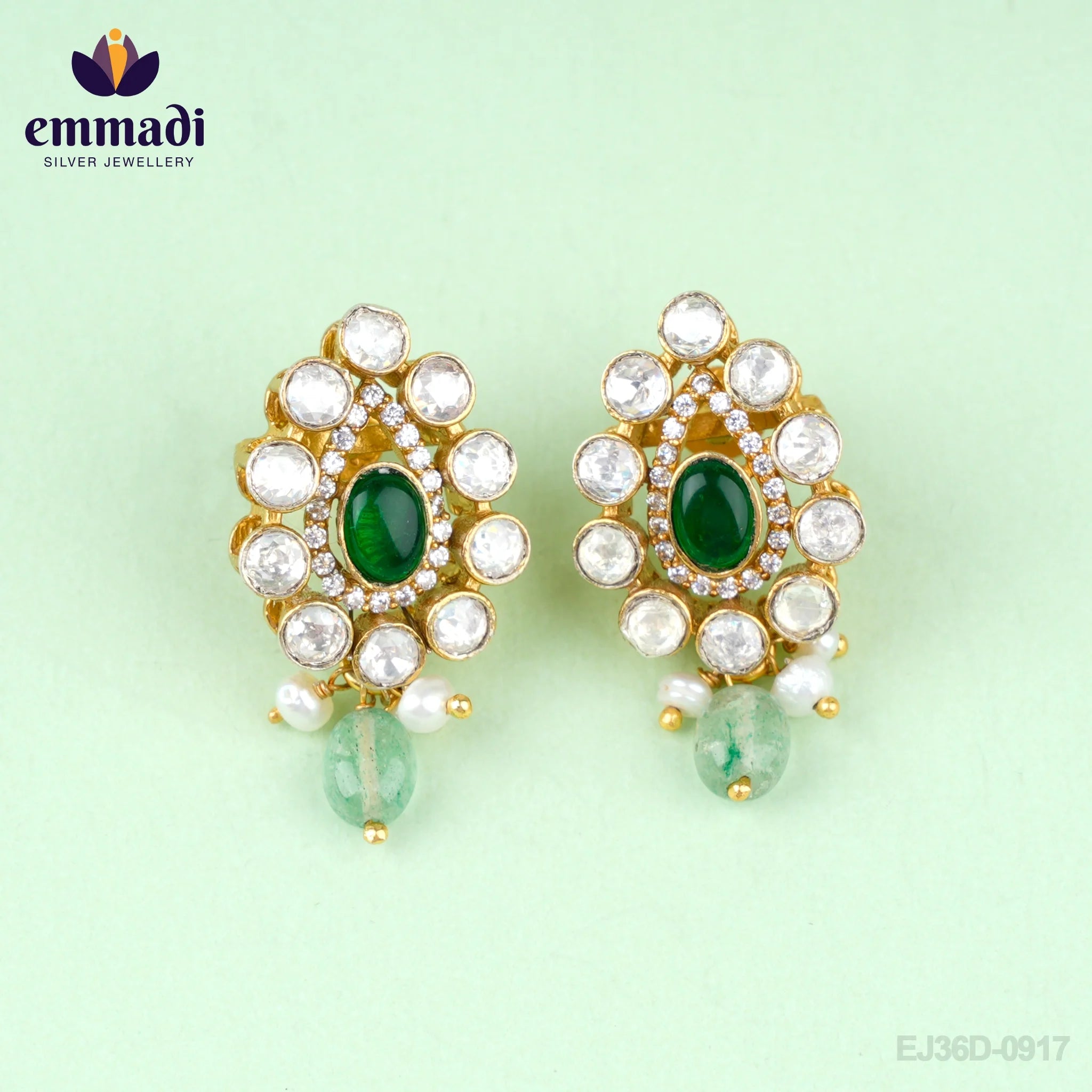 Our Mangalam Handcrafted Ear Tops Collection features stunning stud earrings made with 92.5 silver and plated with pure gold. Each piece is meticulously handcrafted by the skilled artisans at Emmadi Jewellers, ensuring exceptional quality and attention to detail.