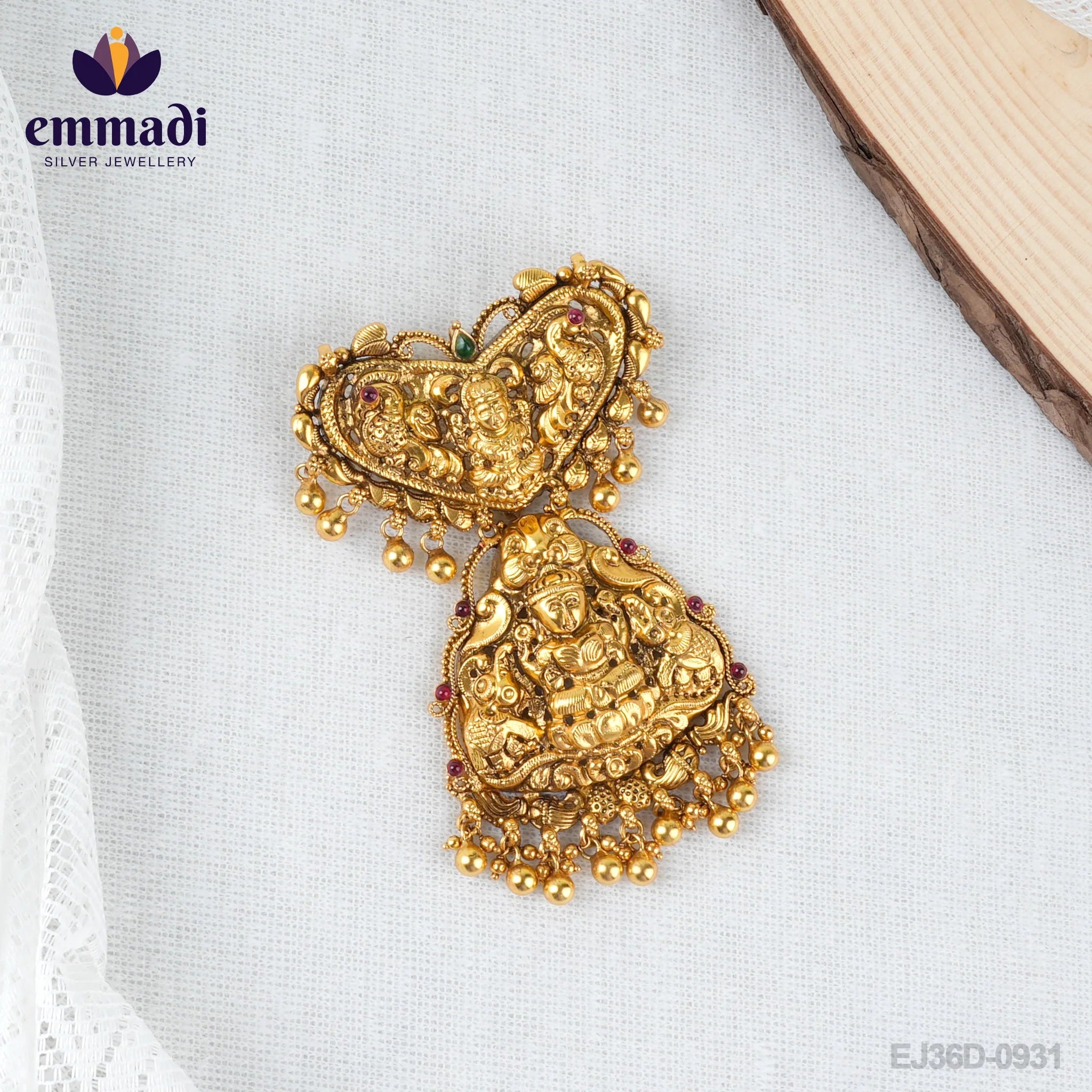 Emmadi Jewellers brings you the exquisite Nakshi Red Pendant, handcrafted with pure gold plating on 92.5 silver. The intricate design, inspired by traditional Indian Nakshi work, showcases the skilled craftsmanship of our artisans.
