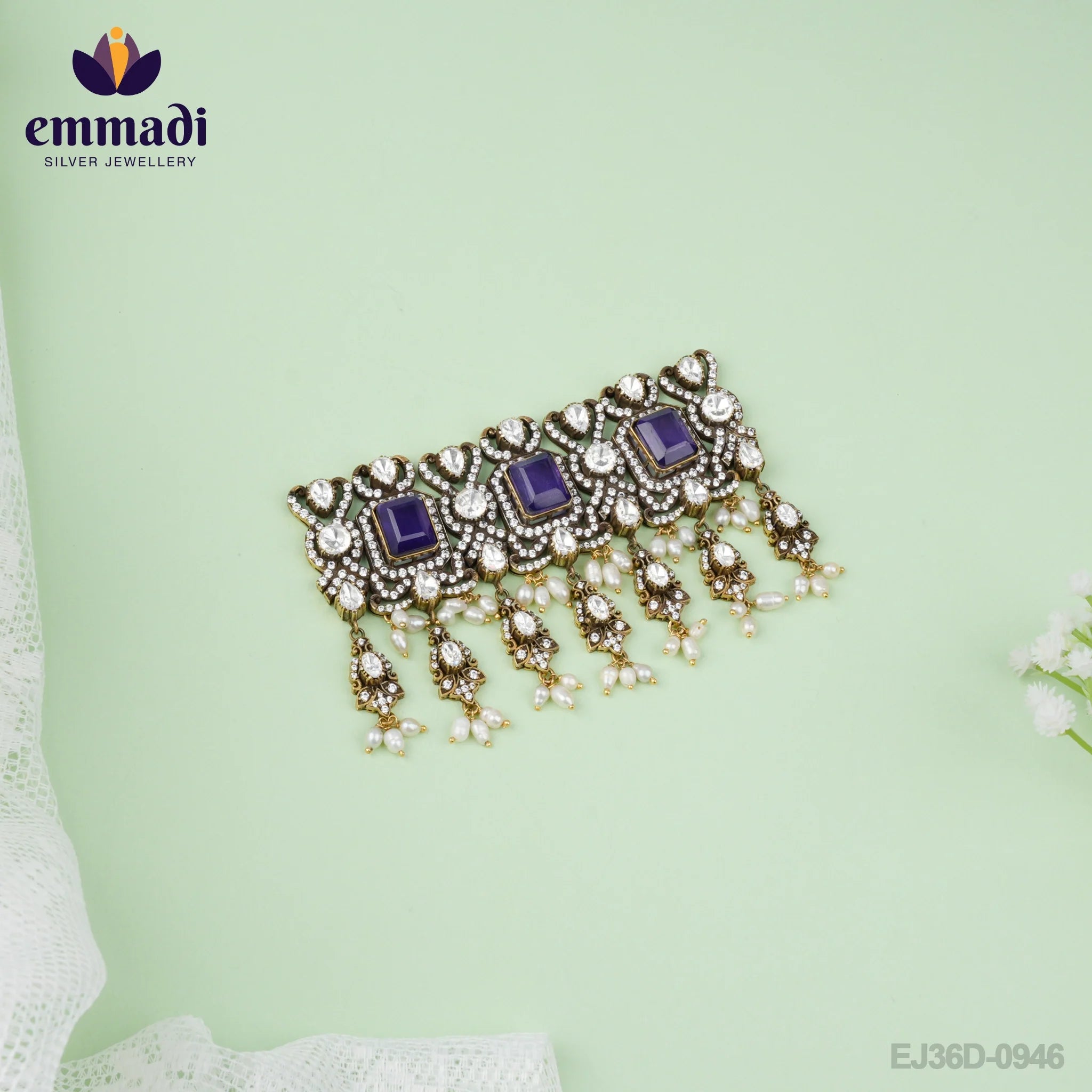 In addition to its stunning aesthetic appeal, Maya's Victorian Blue Choker is also a symbol of craftsmanship and tradition. Each piece is handcrafted by skilled artisans, preserving age-old techniques and ensuring that every choker is of the highest quality.