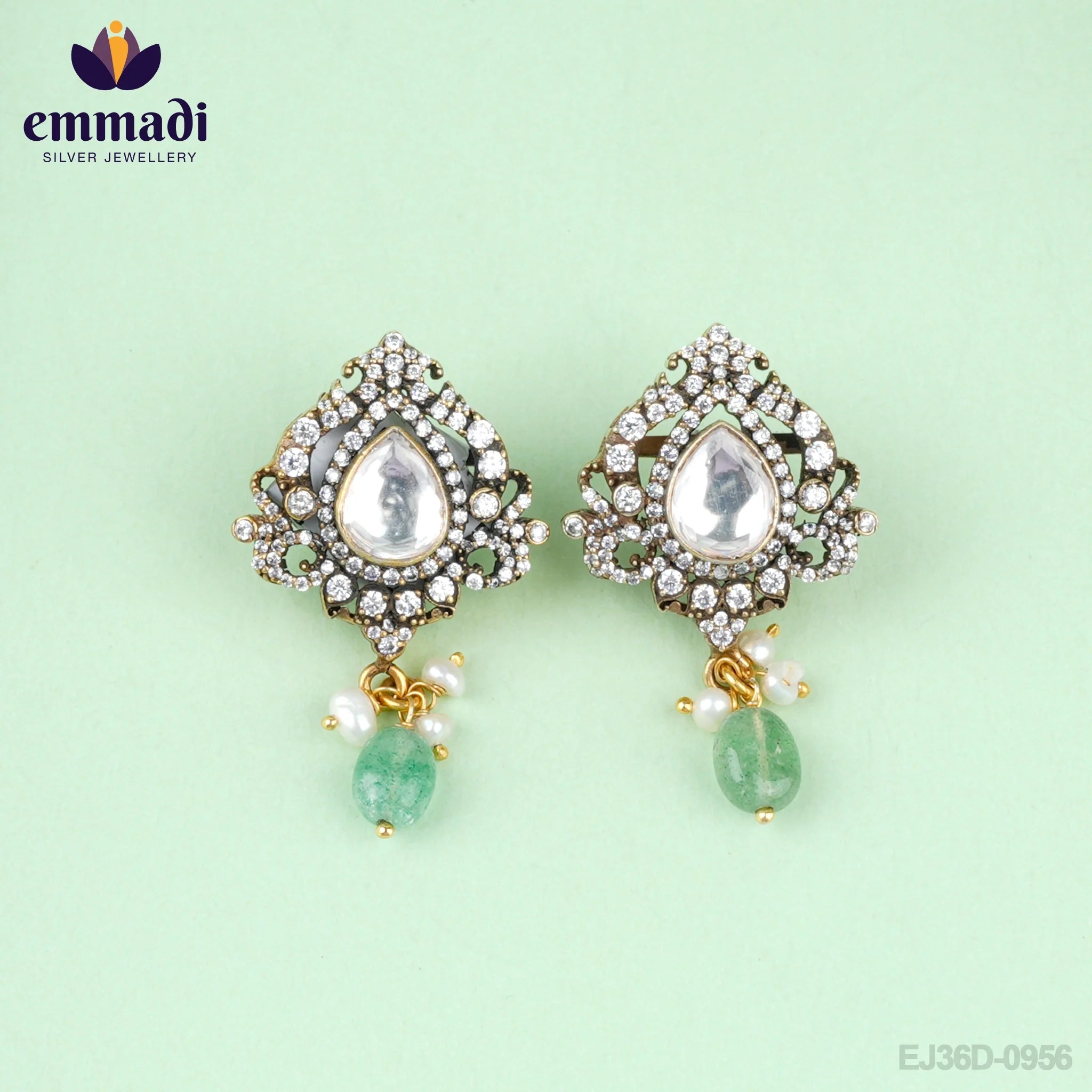 At Vishwakarma Handcrafted, we pride ourselves on creating exquisite jewelry pieces that are a true testament to traditional Indian craftsmanship. Our Ear Tops collection, specifically the Victorian White Ear Tops, are intricately designed and handcrafted with Pure Gold Plating on 92.5 silver by emmadi jewellers.