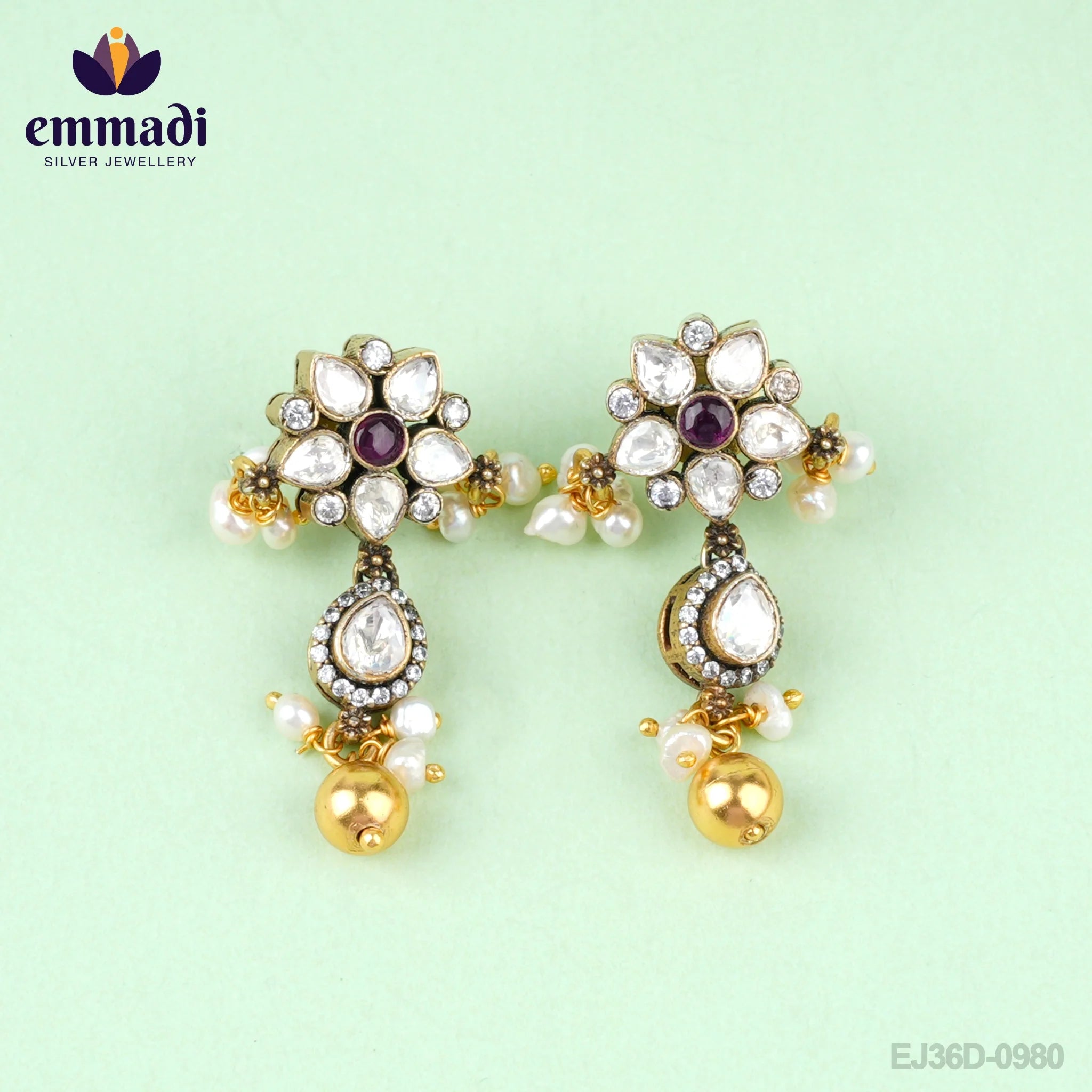 Our Arunima Handcrafted Jewelry collection features exquisite hangings with a Victorian Pink design, handcrafted with 92.5 silver and pure gold plating by Emmadi Jewellers. Each piece is carefully crafted with intricate details and stunning embellishments, making it a timeless and elegant addition to your jewelry collection.