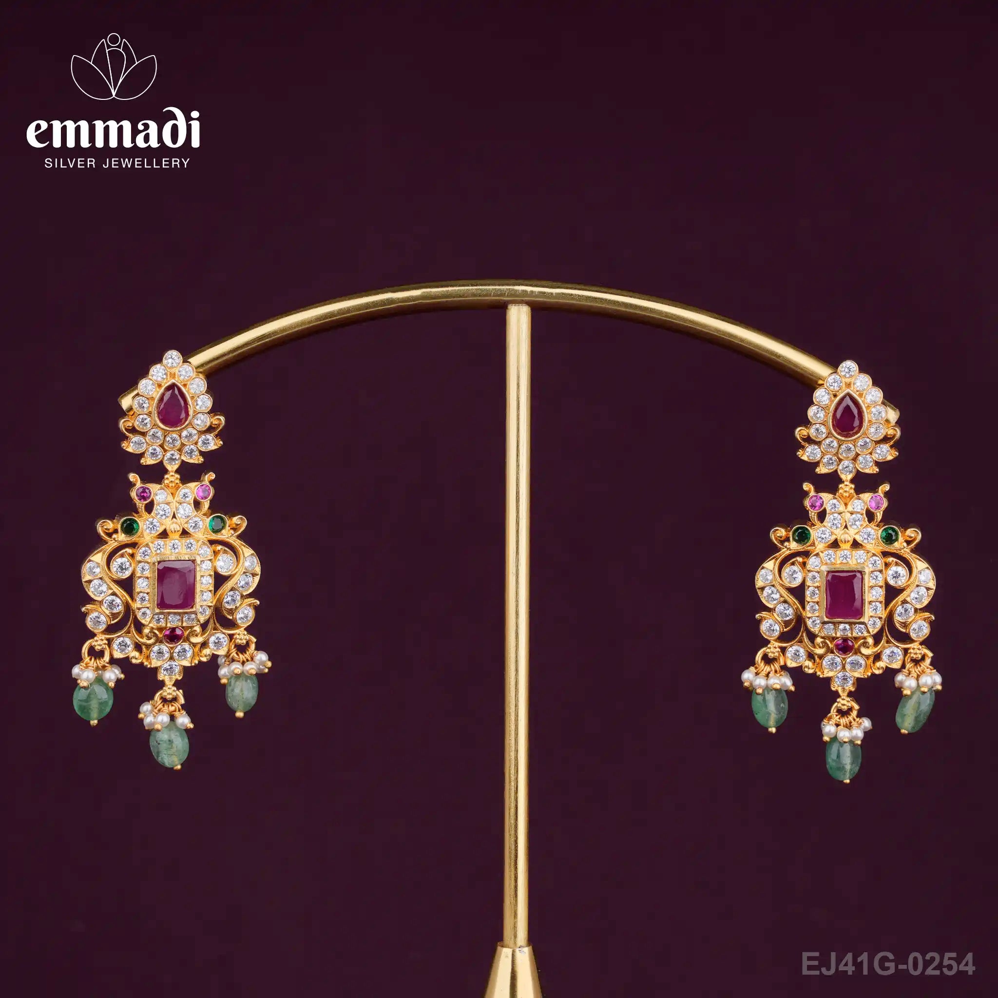 Indulge in the exquisite beauty of the Mahakasi Stone Multi Hangings, designed to elevate your style to new heights. From the prestigious Emmadi Silver Jeweller, India's Largest silver brand, these earrings exude luxury and charm like no other. Let the shimmering stones and intricate craftsmanship of the Mahakasi Stone Multi Hangings set you apart with undeniable elegance and grace. Elevate your ensemble and make a statement that resonates with sophistication.