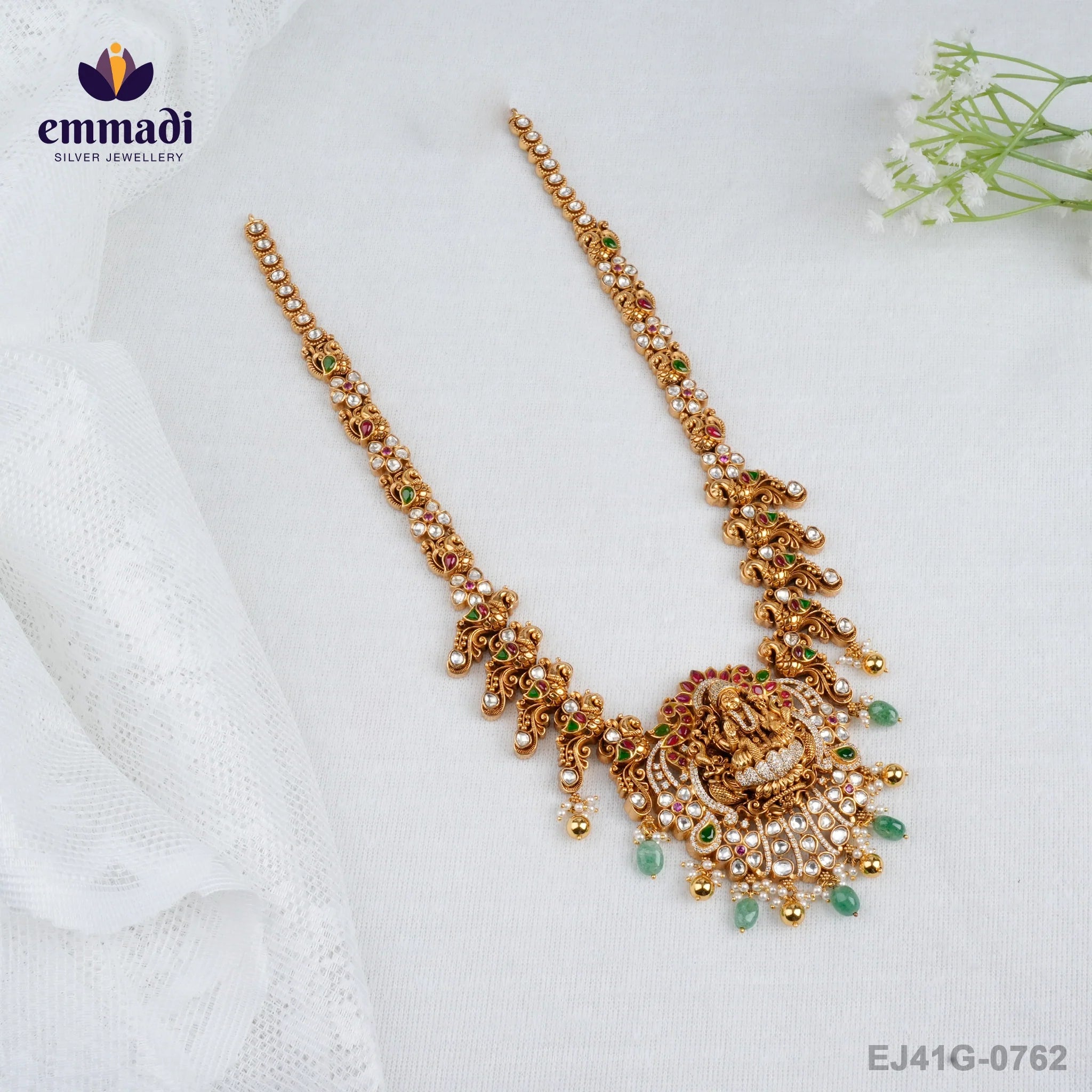Indulge in opulence with the Chakshani Polki Nakshi Multi Long Necklace by Emmadi Silver Jeweller, India's Largest silver brand. Adorn yourself in the grandeur of intricate craftsmanship and exquisite design. Elevate your style with this luxurious statement piece that exudes elegance and grace. Perfect for adding a touch of sophistication to any outfit, this necklace is a must-have for those who appreciate the finer things in life. Dare to stand out and make a statement with this mesmerising creation.