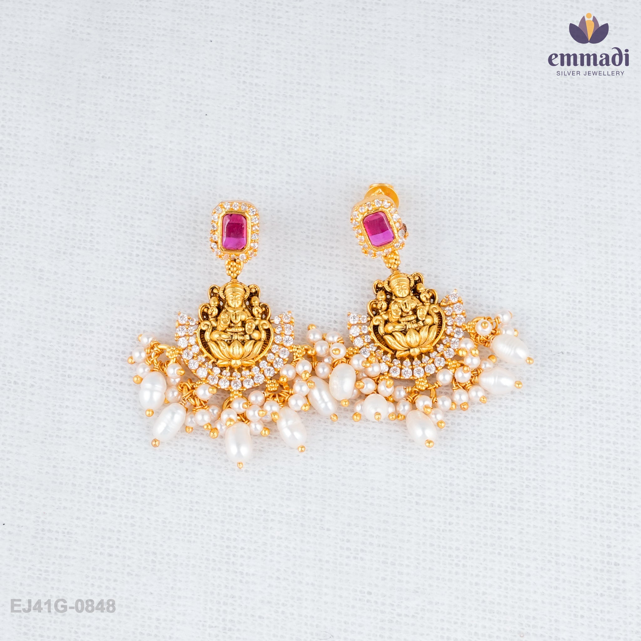 Crafted from high-quality 92.5 sterling silver, the Darshini Hangings feature exquisite Nakshi detailing that reflects the skill and precision of master artisans. The vibrant pink stones add a pop of color, perfectly complemented by the rich gold plating, giving these earrings a luxurious and regal finish.