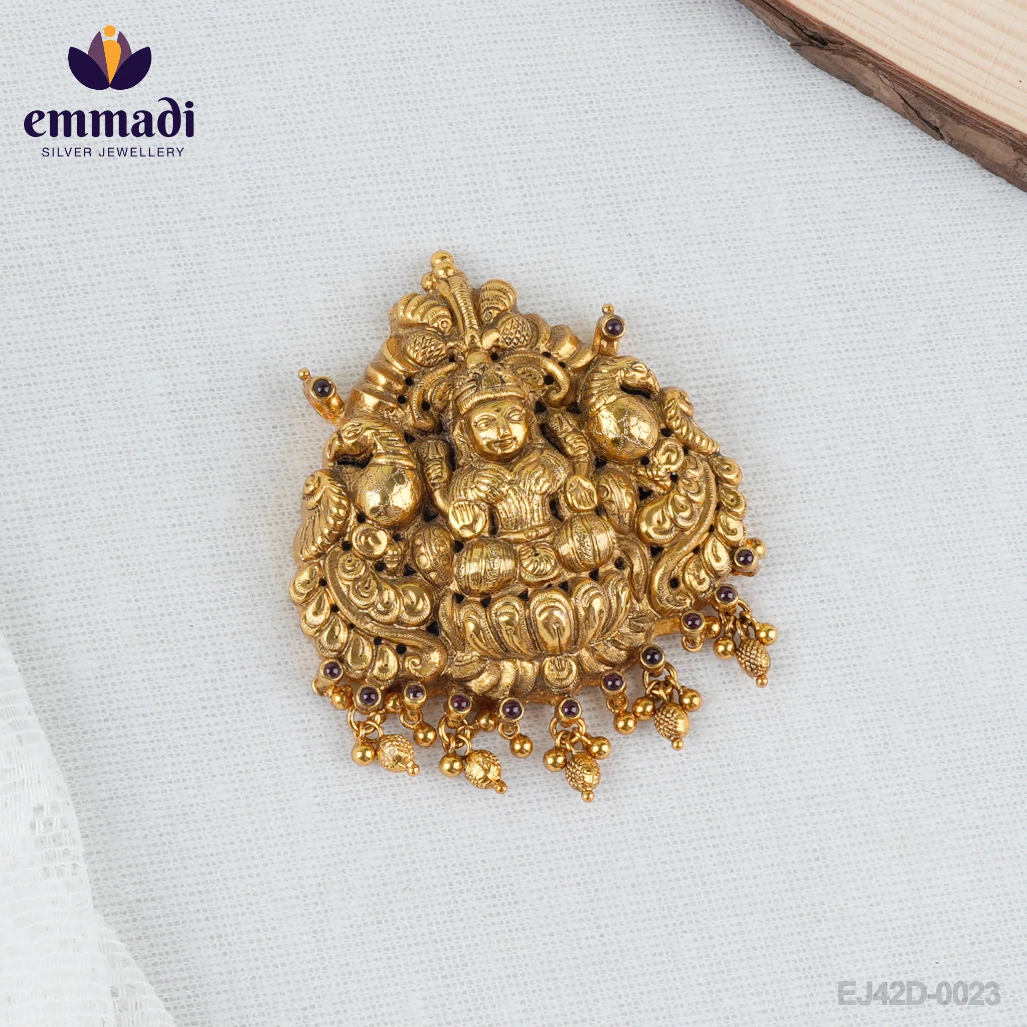 Emmadi Jewellers brings you the exquisite Nakshi Red Pendant, handcrafted with pure gold plating on 92.5 silver. The intricate design, inspired by traditional Indian Nakshi work, showcases the skilled craftsmanship of our artisans.