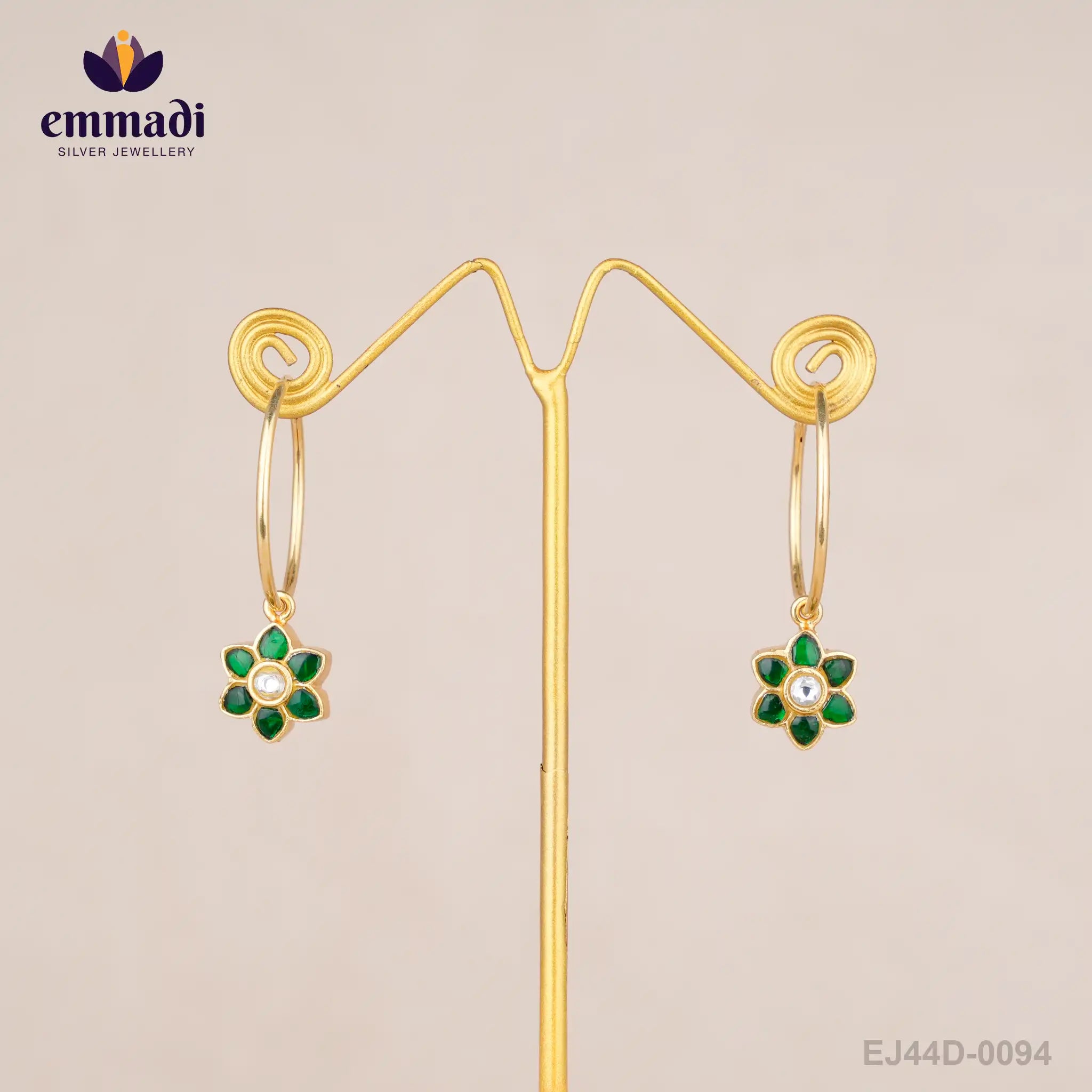 Indulge in the essence of elegance with the Mrinalini Kundan Green Hangings by Emmadi Silver Jeweller, India's Largest silver brand. ���� Crafted with precision and adorned with dazzling green Kundan stones, these earrings are a true masterpiece of luxury. Elevate your style and make a statement with these exquisite hangings that effortlessly blend tradition with modern sophistication. Perfect for special occasions or adding a touch of opulence to your everyday look, these earrings are a must-have for those who appreciate the finer things in life. Experience the allure of timeless beauty with the Mrinalini Kundan Green Hangings.