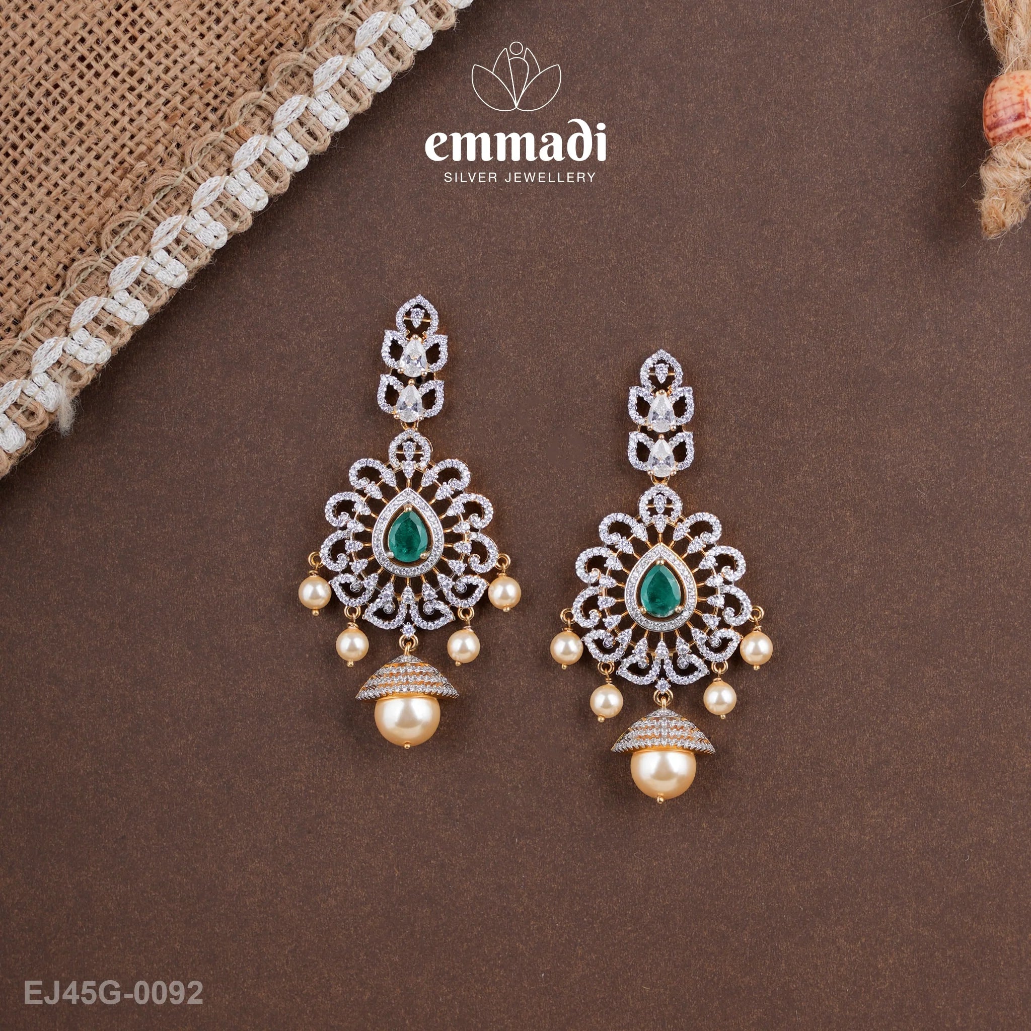 Indulge in the exquisite allure of Pattadevi Premium Cz Green Hangings from Emmadi Silver Jeweller - India's Largest silver brand. Elevate your style with these captivating earrings, exuding opulence and sophistication. Let the shimmering green CZ stones add a touch of luxury to your ensemble, making every moment truly special. Dress to impress with this stunning accessory that radiates elegance and glamour effortlessly. Make a statement with Pattadevi Premium Cz Green Hangings - a true embodiment of refined beauty.
