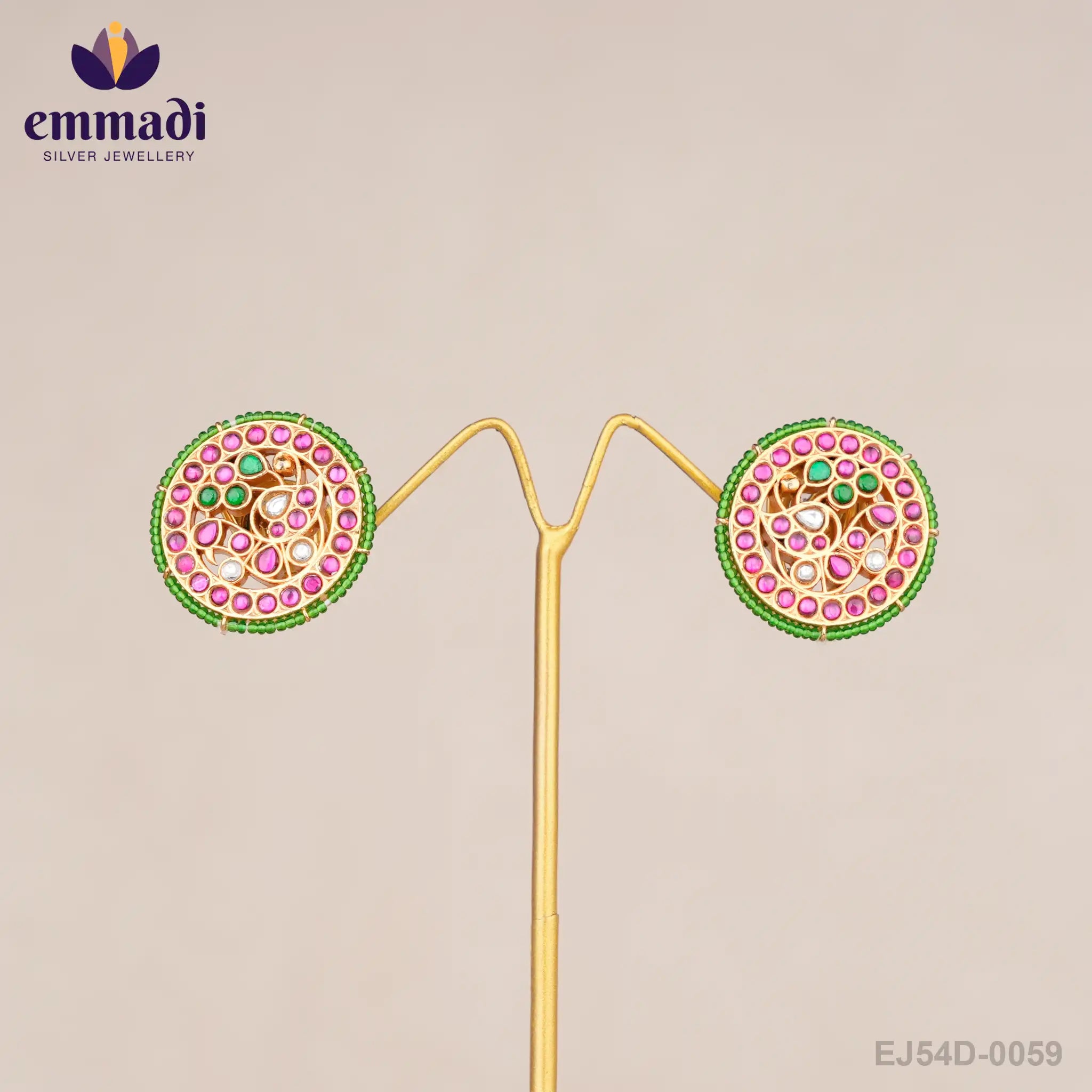 Indulge in the opulence of Buddhiakari Kundan Multi Studs, a masterpiece crafted by Emmadi Silver Jeweller, India's Largest silver brand. Elevate your ensemble with these exquisite studs, each adorned with dazzling kundan stones that exude elegance and refinement. Dive into a world of luxury and sophistication with these timeless pieces that are sure to make a statement wherever you go. Enhance your jewellery collection with the unparalleled beauty of Buddhiakari Kundan Multi Studs.