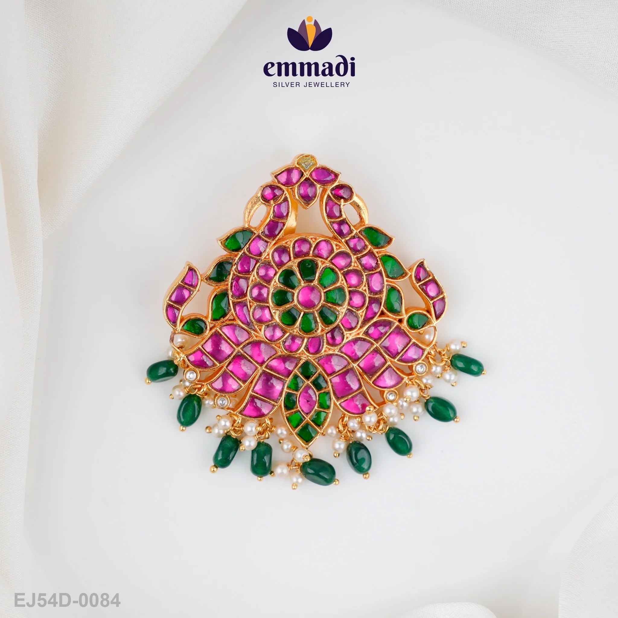 Indulge in the exquisite charm of the Champakali Kundan Multi Pendant from Emmadi Silver Jeweller, India's Largest silver brand. Elevate your style with this opulent piece that exudes sophistication and grace. Let the intricate design and dazzling Kundan detailing make a statement of luxury and refinement. Adorn yourself with the essence of elegance and allure.