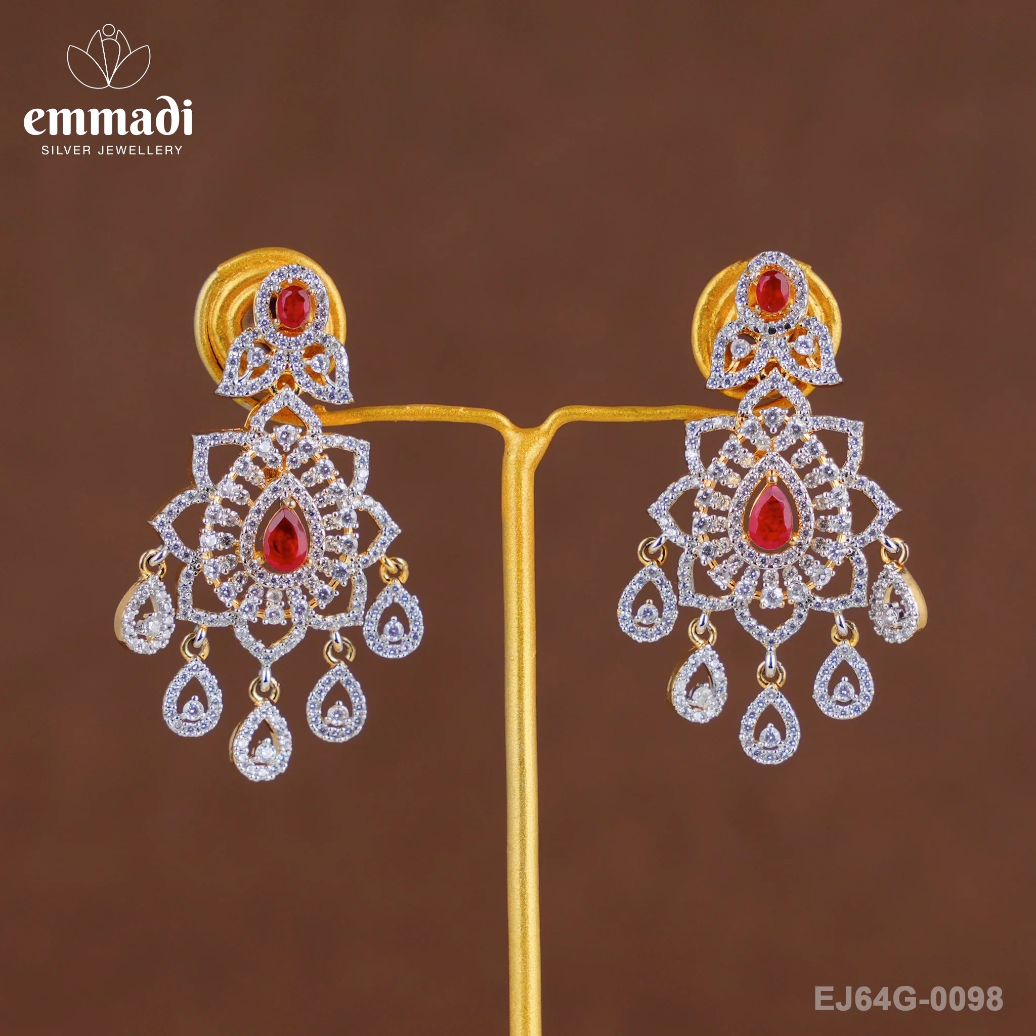 Indulge in the epitome of luxury with Subhashini Premium Cz Red Hangings from Emmadi Silver Jeweller, India's Largest silver brand. Shimmer and shine with these exquisite earrings that effortlessly blend elegance and glamour. Elevate your style and captivate all with these stunning red hangings that exude sophistication and grace. Adorn yourself with the finest craftsmanship and make a statement wherever you go.