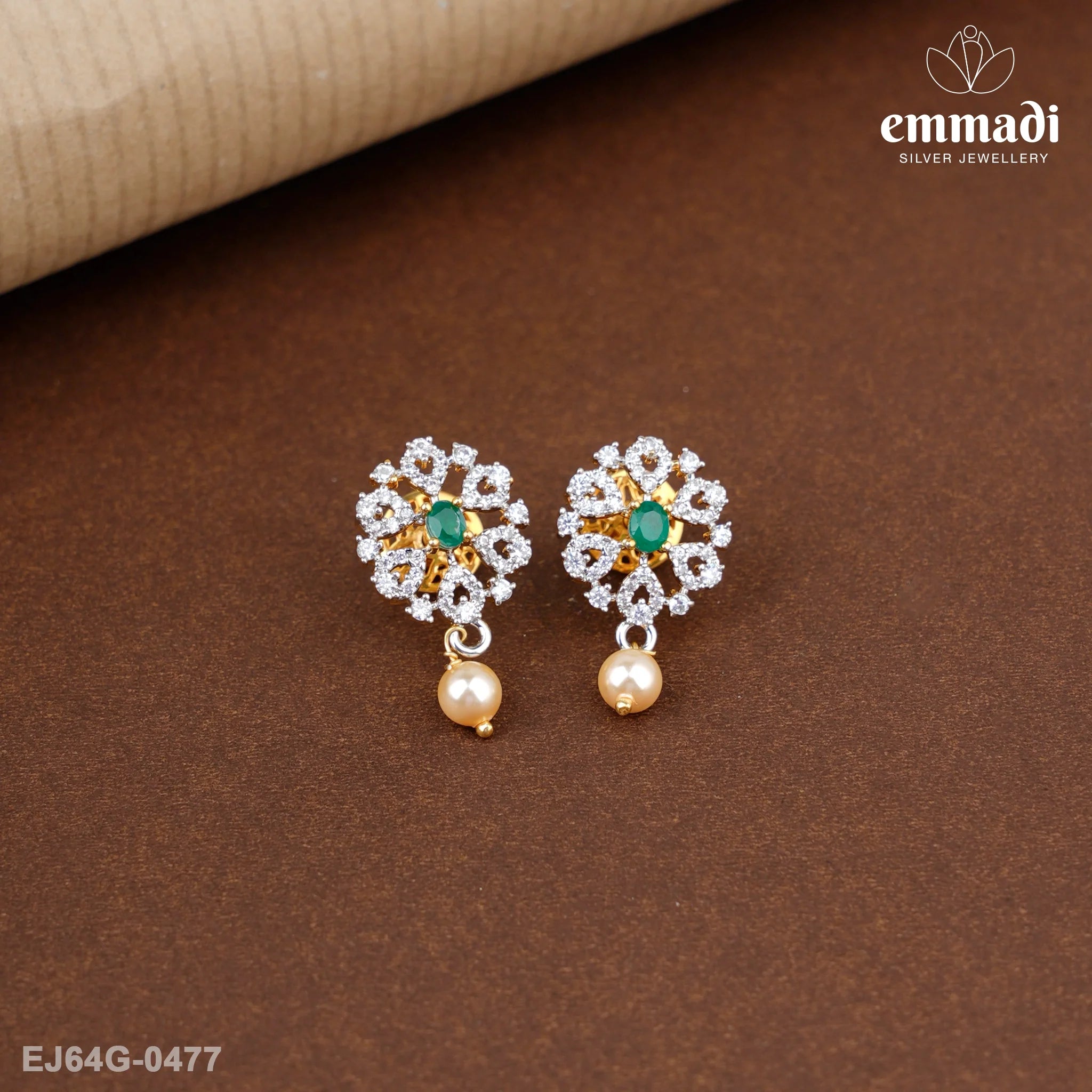 Indulge in elegance with the Pahmagandhi Premium CZ Green Studs from Emmadi Silver Jeweller, India's Largest silver brand. Let the lustrous green hues of these exquisite studs transport you to a realm of unparalleled sophistication and style. Elevate your look with these captivating pieces that exude luxury and charm. Step into a world of opulence and grace with the Pahmagandhi Premium CZ Green Studs.