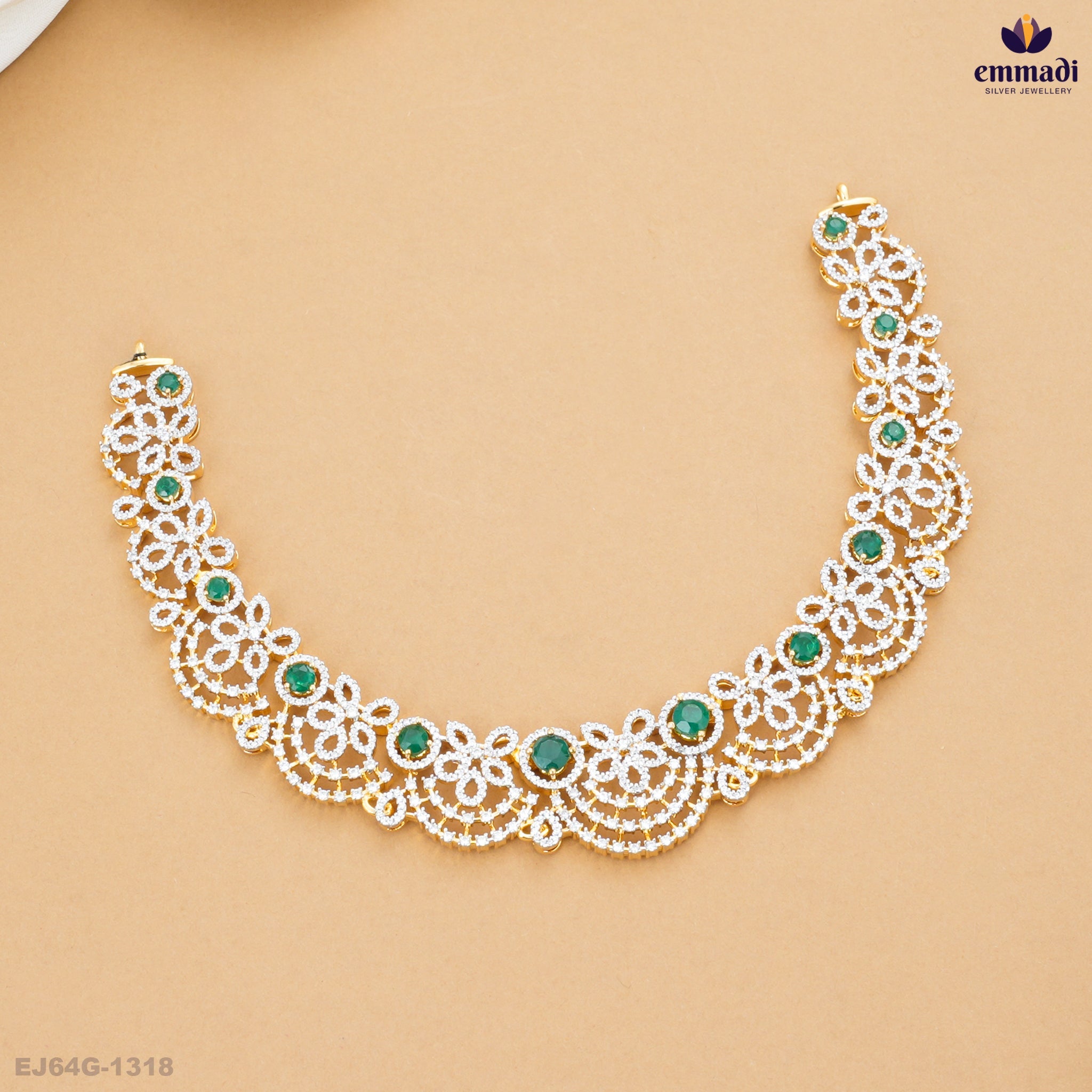 The centerpiece of this stunning necklace is the stunning premium cubic zirconia (CZ) stones, artfully arranged to showcase their brilliant sparkle. The rich green hue of the CZ adds a splash of charm and allure, making it an ideal accessory for both everyday wear and special occasions.