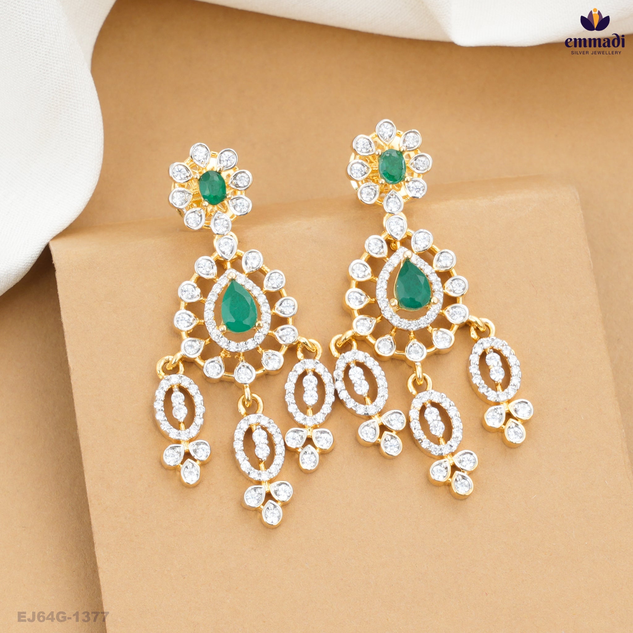 The centerpiece of these hangings is the vibrant green cubic zirconia, known for its dazzling brilliance and captivating hue. The exquisite craftsmanship showcases intricate detailing that brings each piece to life, highlighting the shimmering stones beautifully. The design features delicate curves and fluid forms that gracefully catch the light, adding a touch of luxury to your jewelry collection.