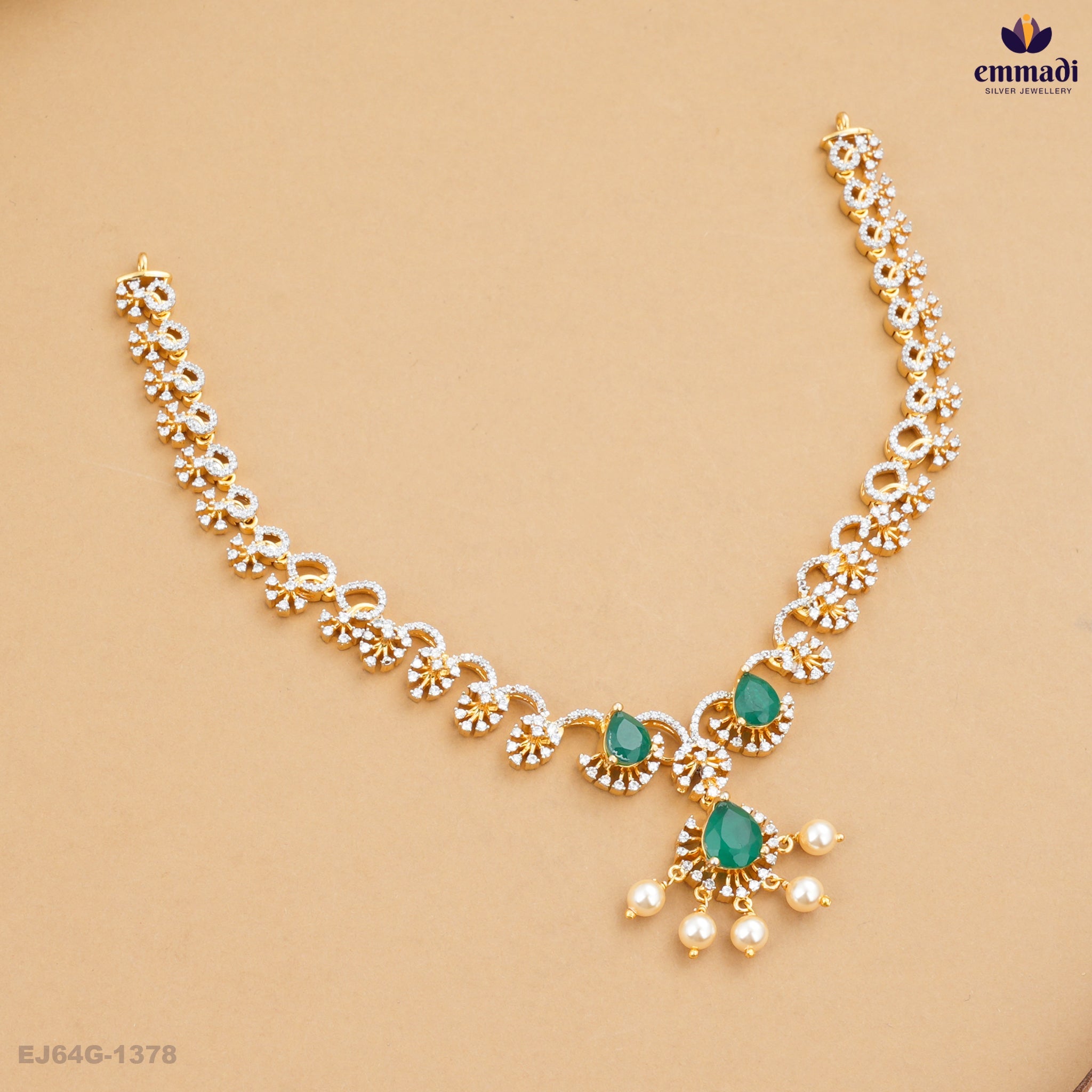 Discover the elegance of the Aswathi Exquisite Green CZ Necklace, a stunning addition to your jewellery collection that embodies sophistication and style. This premium necklace features a meticulously crafted design, showcasing radiant CZ stones in a rich green hue that captivates the eye and complements any outfit, from casual wear to formal attire.