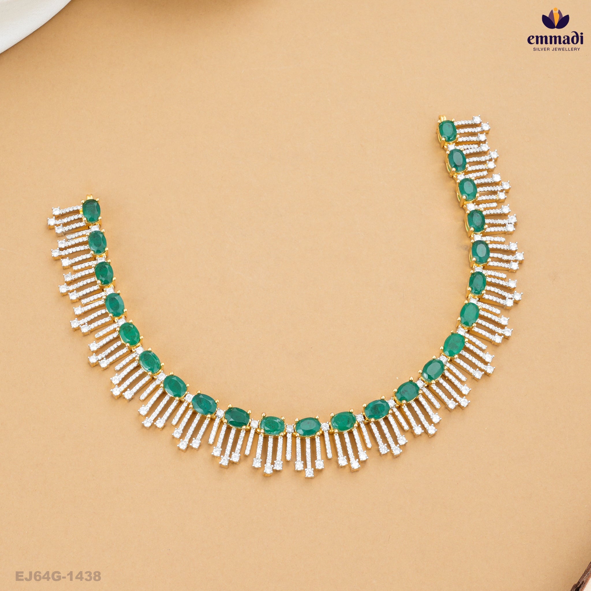 The centerpiece of the necklace features high-quality premium cubic zirconia (CZ), renowned for its brilliant sparkle and durability. The carefully selected green CZ gems are set in a way that maximizes their sparkle and creates a captivating play of light. Their lush hue serves as a striking contrast to the sleek silver design, making this piece a true statement accessory.