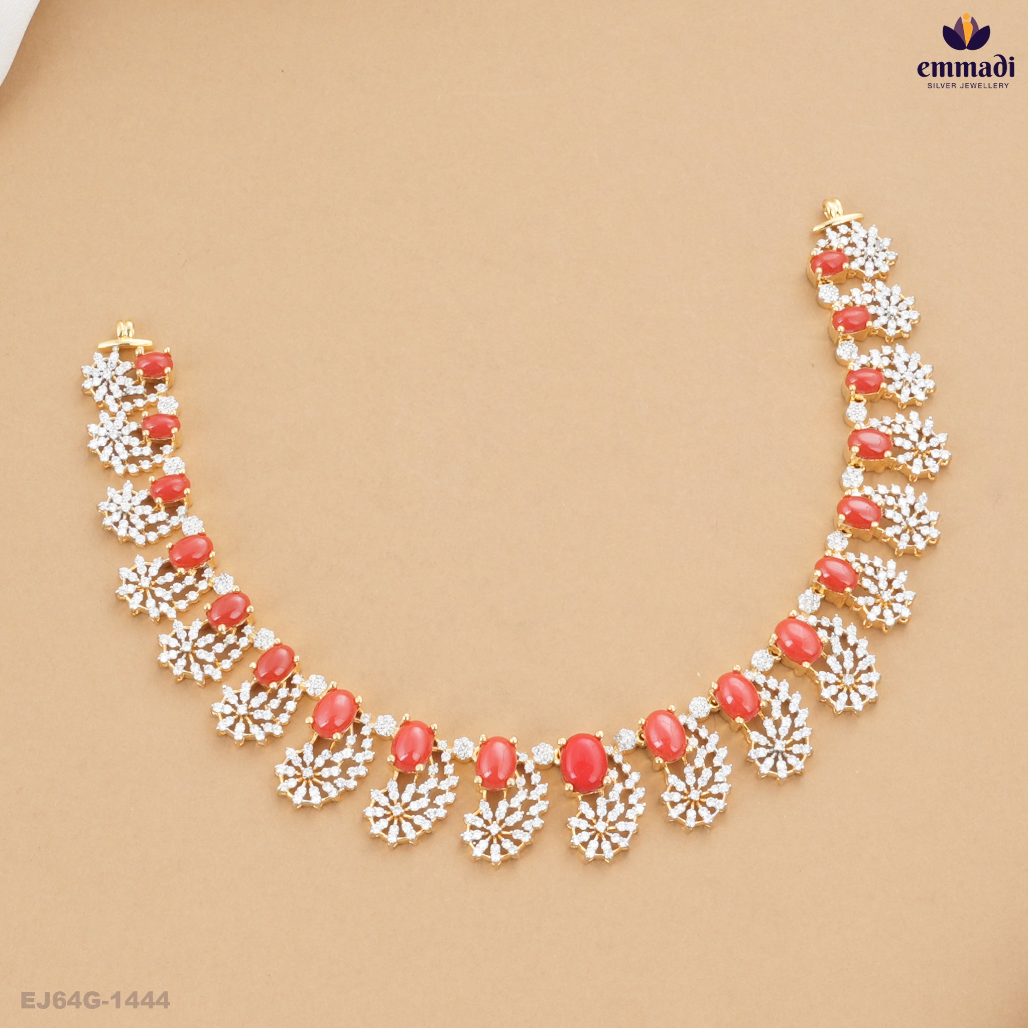 Introducing the BANMALA Exquisite Orange Premium CZ Necklace, a stunning piece that effortlessly combines elegance and contemporary style. Crafted with meticulous attention to detail, this necklace is designed for those who appreciate unique and eye-catching accessories. The centerpiece features a brilliant array of premium cubic zirconia that radiates a vibrant orange hue, adding a warm and inviting touch to any ensemble.