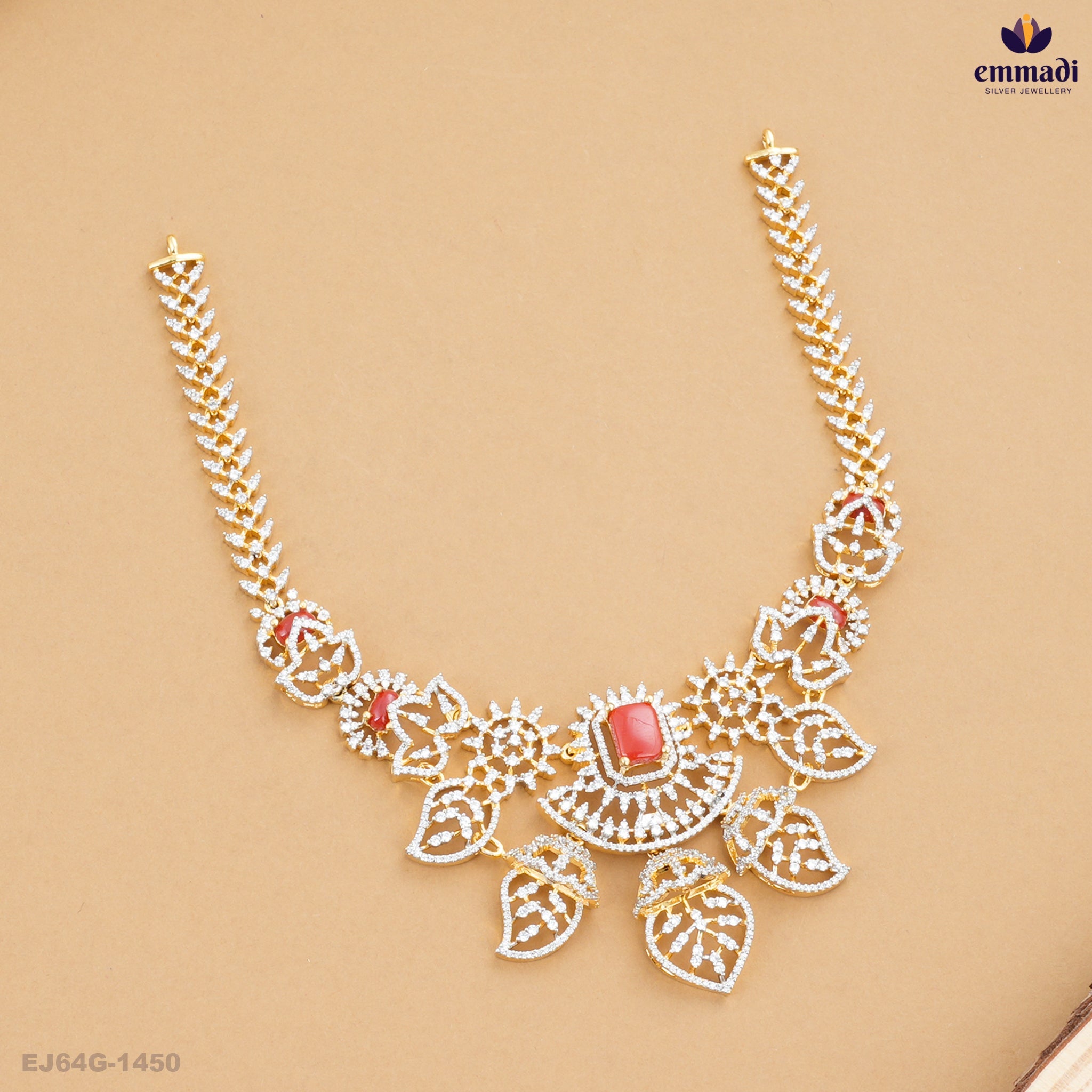 Introducing the BANUMATHY Exquisite Red CZ Necklace, a stunning addition to your jewelry collection that embodies elegance and sophistication. Crafted with meticulous attention to detail, this captivating necklace features a brilliant centerpiece made from premium cubic zirconia, reflecting a rich, vibrant red hue that adds a touch of glamour to any outfit.