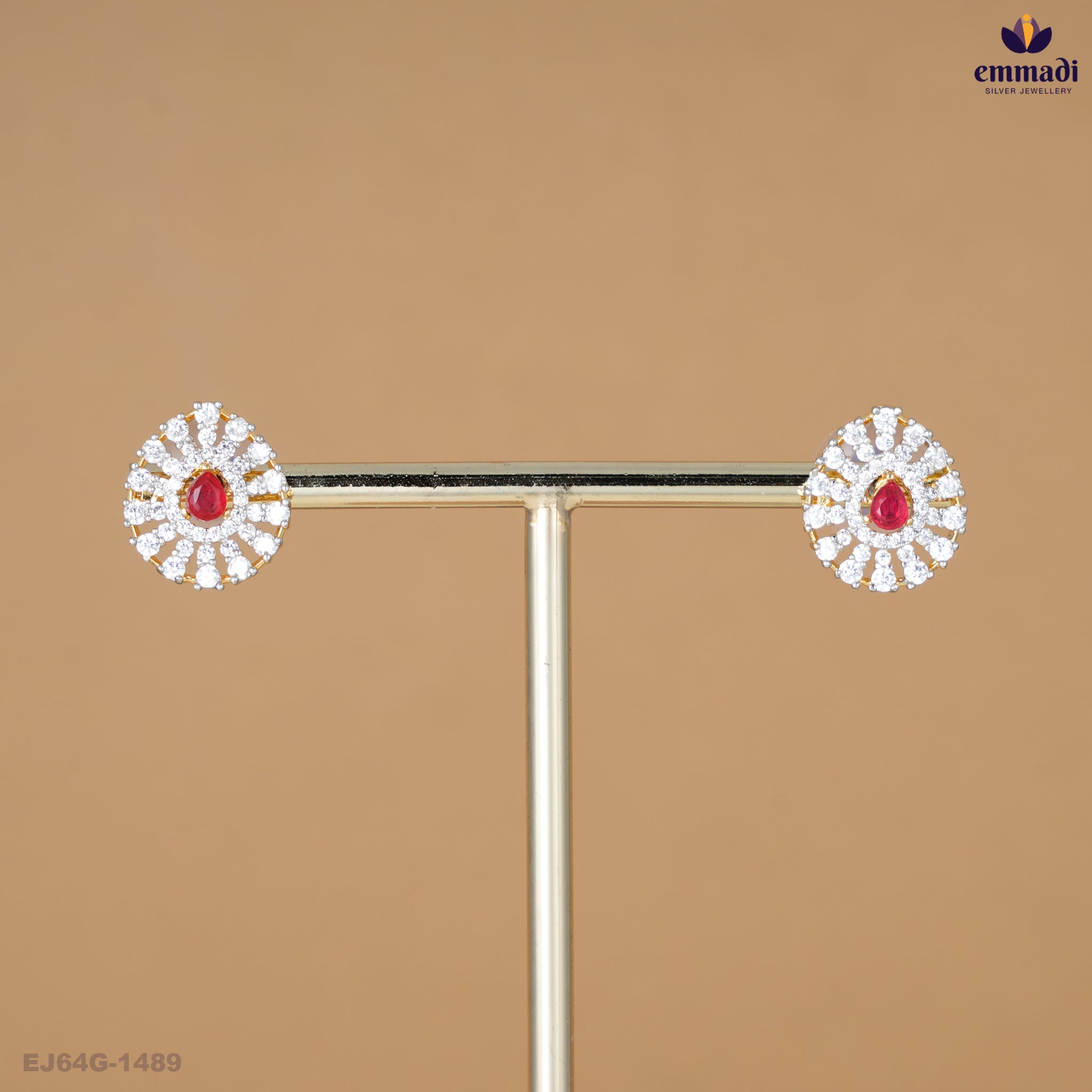 BHARATEAH Exquisite Red CZ Studs Jewelry