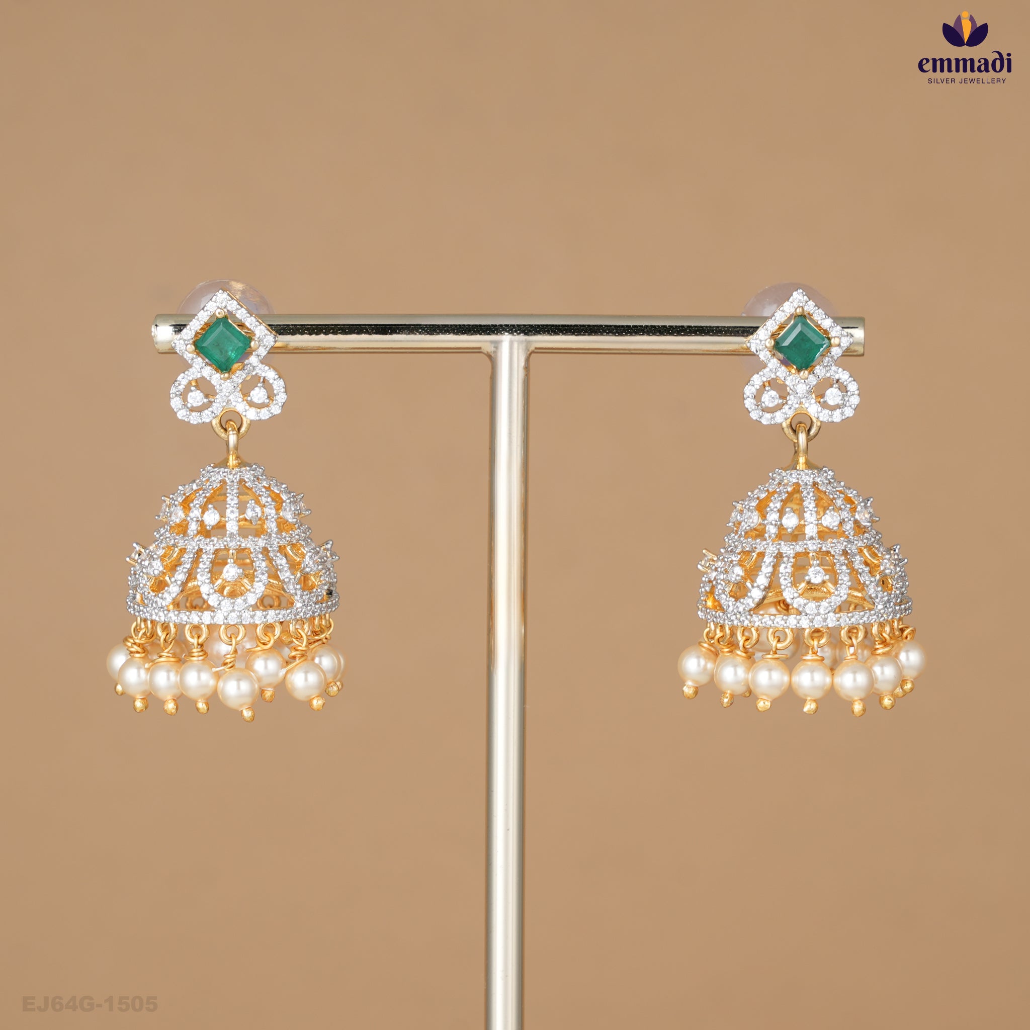 The Buttalu design features intricate patterns that draw inspiration from Indian artistry, reflecting a deep cultural significance. The striking green color of the CZ stones complements the luminous silver tones beautifully, offering a pop of color that is both vibrant and sophisticated. Each stone is meticulously set, ensuring maximum brilliance and sparkle with every movement.