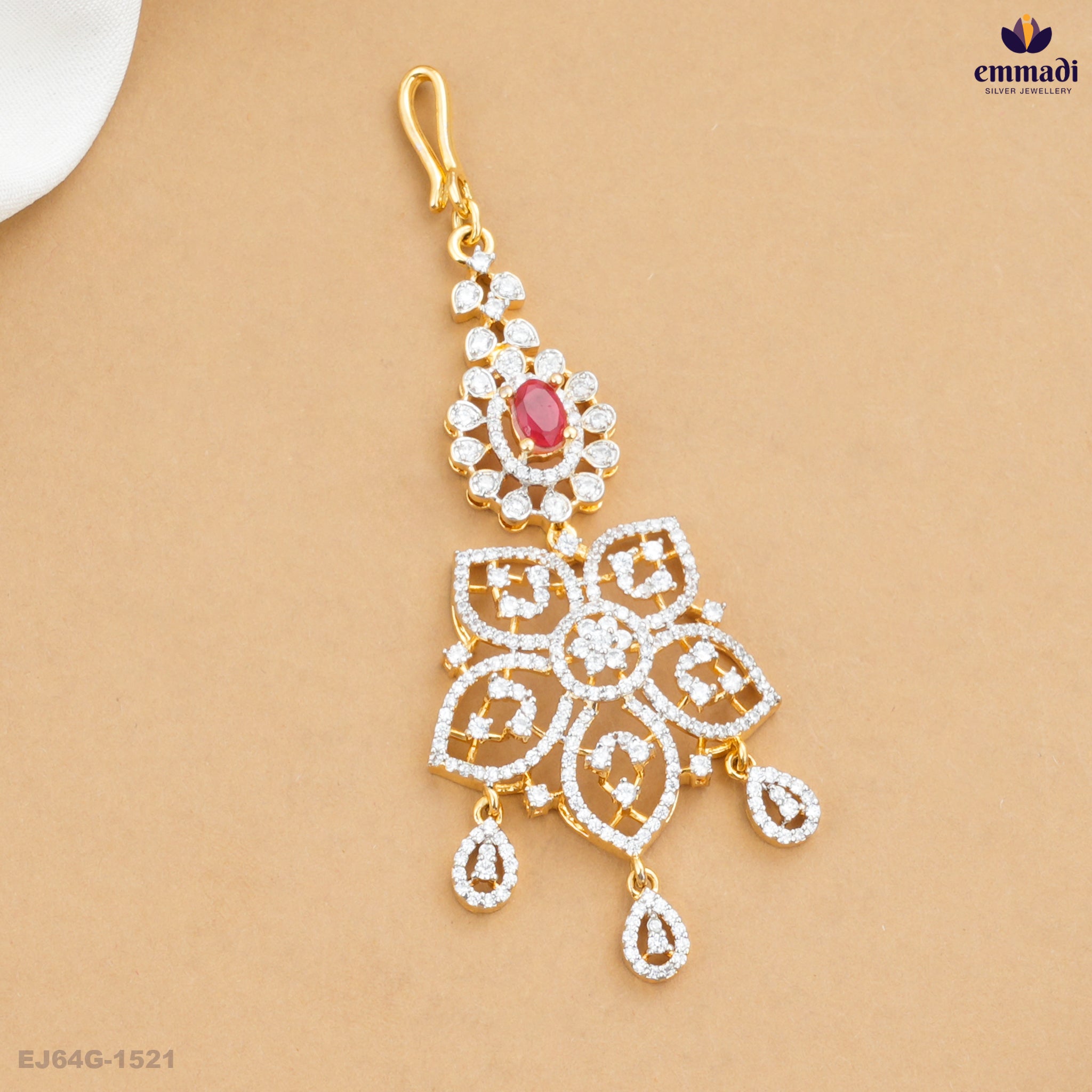 The centerpiece of the PAPIDI BILLA is a vibrant red, high-quality cubic zirconia stone, expertly cut to enhance its brilliance and depth. Surrounded by intricate silver detailing, this luxurious piece reflects light beautifully, ensuring all eyes are on you. The design elegantly marries contemporary elegance with traditional motifs, making it a versatile addition to both casual and formal ensembles.