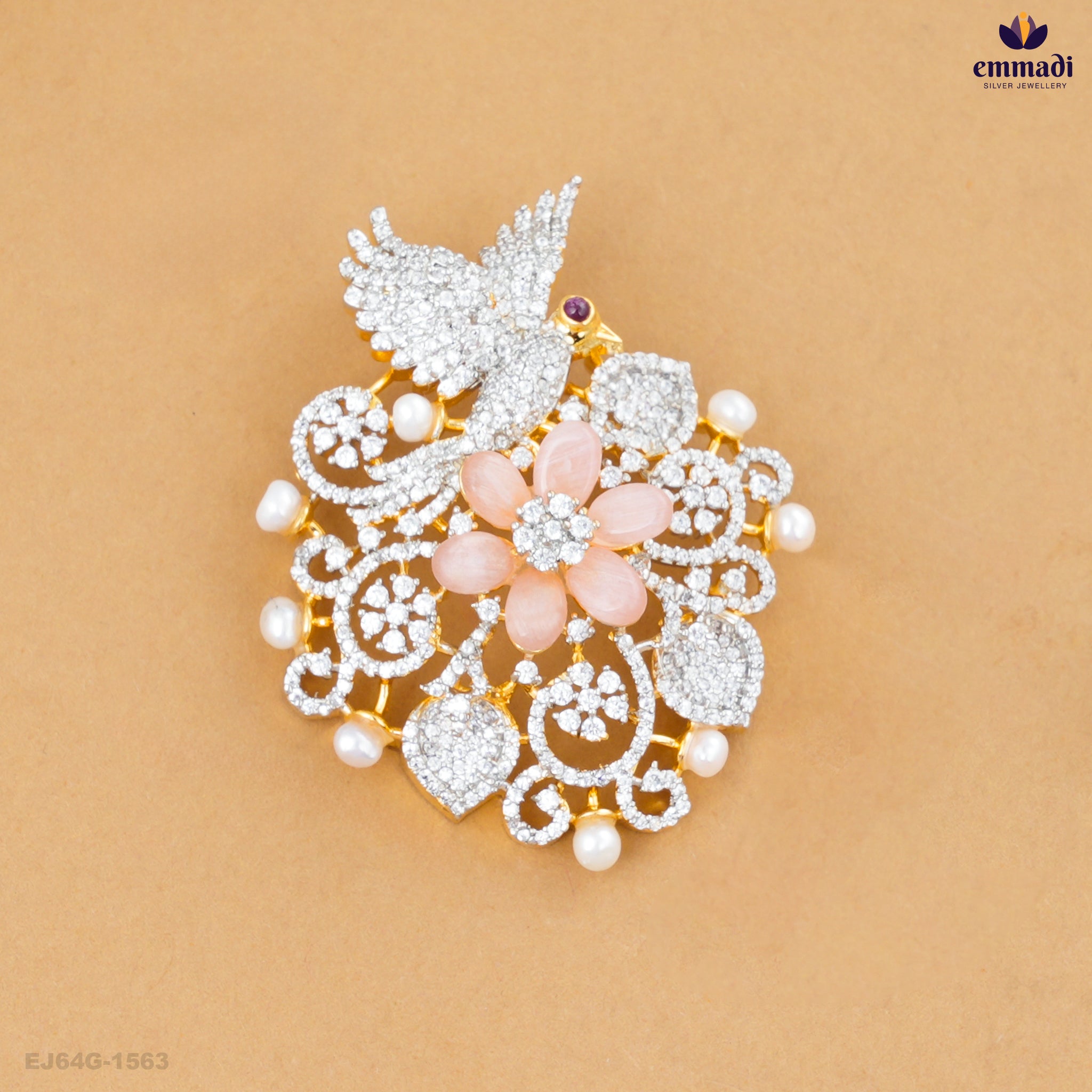 Crafted with attention to detail, the pendant is constructed from high-quality materials that ensure durability and longevity. It is adorned with expertly set gemstones that are secure yet allow for maximum light reflection. The overall finishing of the piece is polished to a luminous shine, ensuring it stands out in any collection.