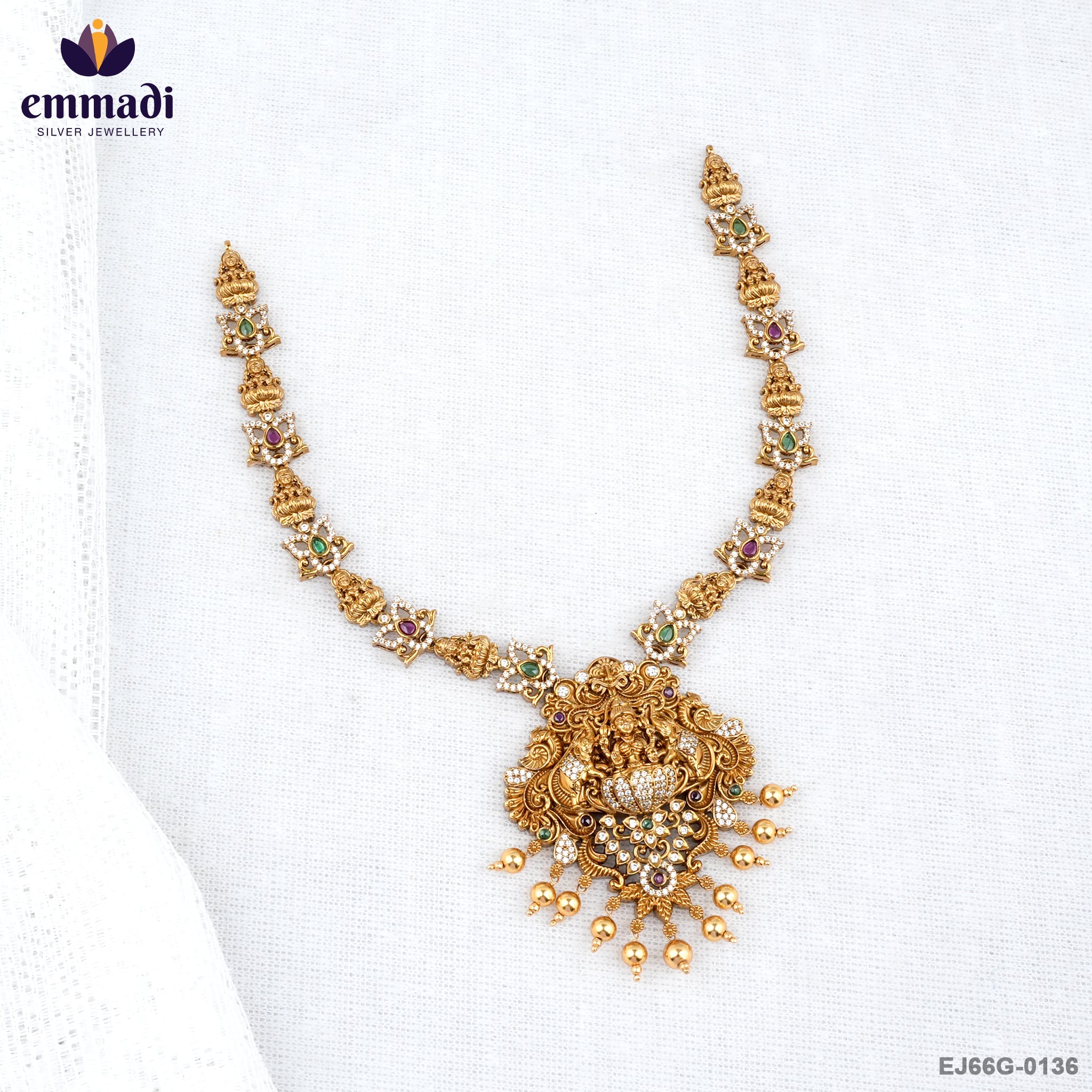 The CZ Nakshi design details provide an exquisite touch, making this necklace not just a piece of jewelry but a statement of style and grace. Its intricate craftsmanship ensures that every angle reveals a new layer of beauty, captivating onlookers with its charm.