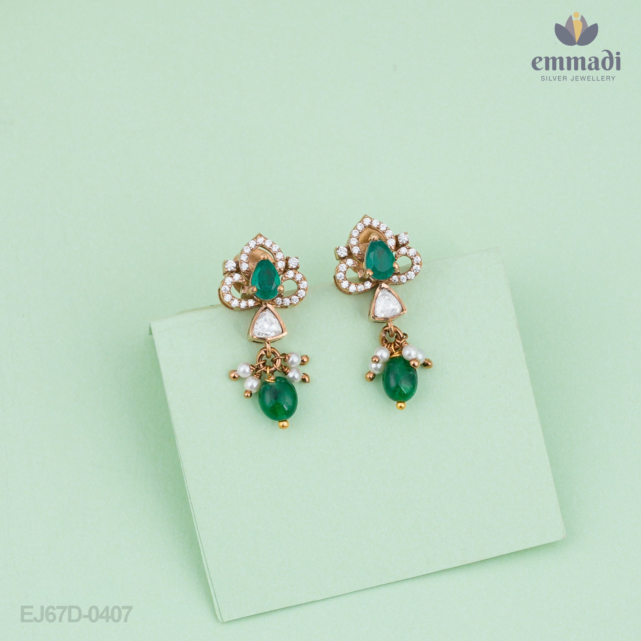 Step into a world of elegance and vintage charm with our Meenakshi Exquisite Green Victorian Hangings, where timeless artistry meets contemporary aesthetics. These captivating earrings blend traditional Victorian design elements with a vibrant green hue, making them a perfect accessory for any occasion.