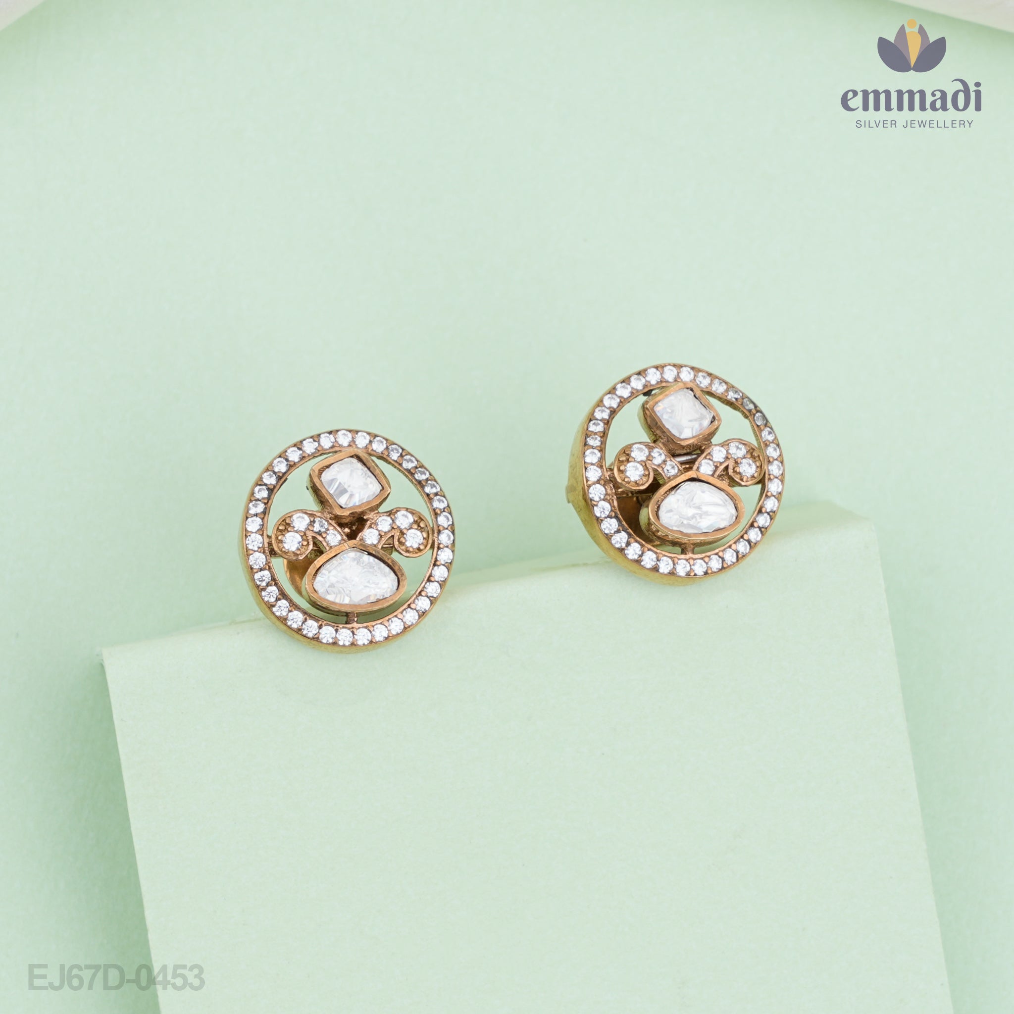 The shimmering white color of the studs is designed to catch the light beautifully, adding a timeless touch to your jewelry collection. Made from high-quality materials, these studs ensure durability while maintaining an elegant appearance. The use of premium zirconia stones enhances the brilliance, offering a radiant sparkle that will make you stand out on any occasion. The stones are set securely in a vintage-style mounting that emphasizes the intricate craftsmanship of the design.