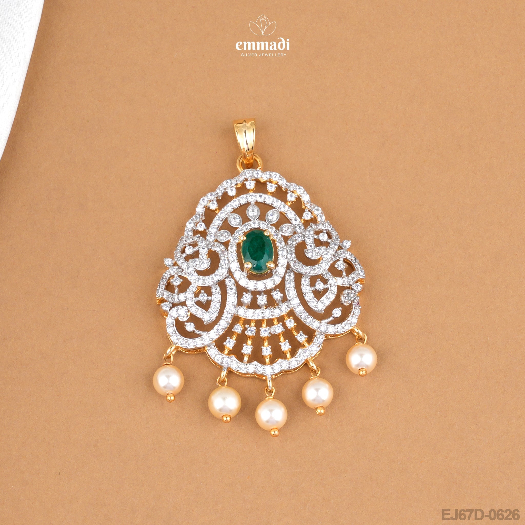 Discover the exquisite craftsmanship of our Premium CZ Pendant, an essential addition to any jewellery collection. This stunning pendant showcases a captivating green cubic zirconia, known for its brilliant brilliance and striking hue. Set in an elegant and intricately designed base, the pendant draws attention with its unique colour and remarkable sparkle.