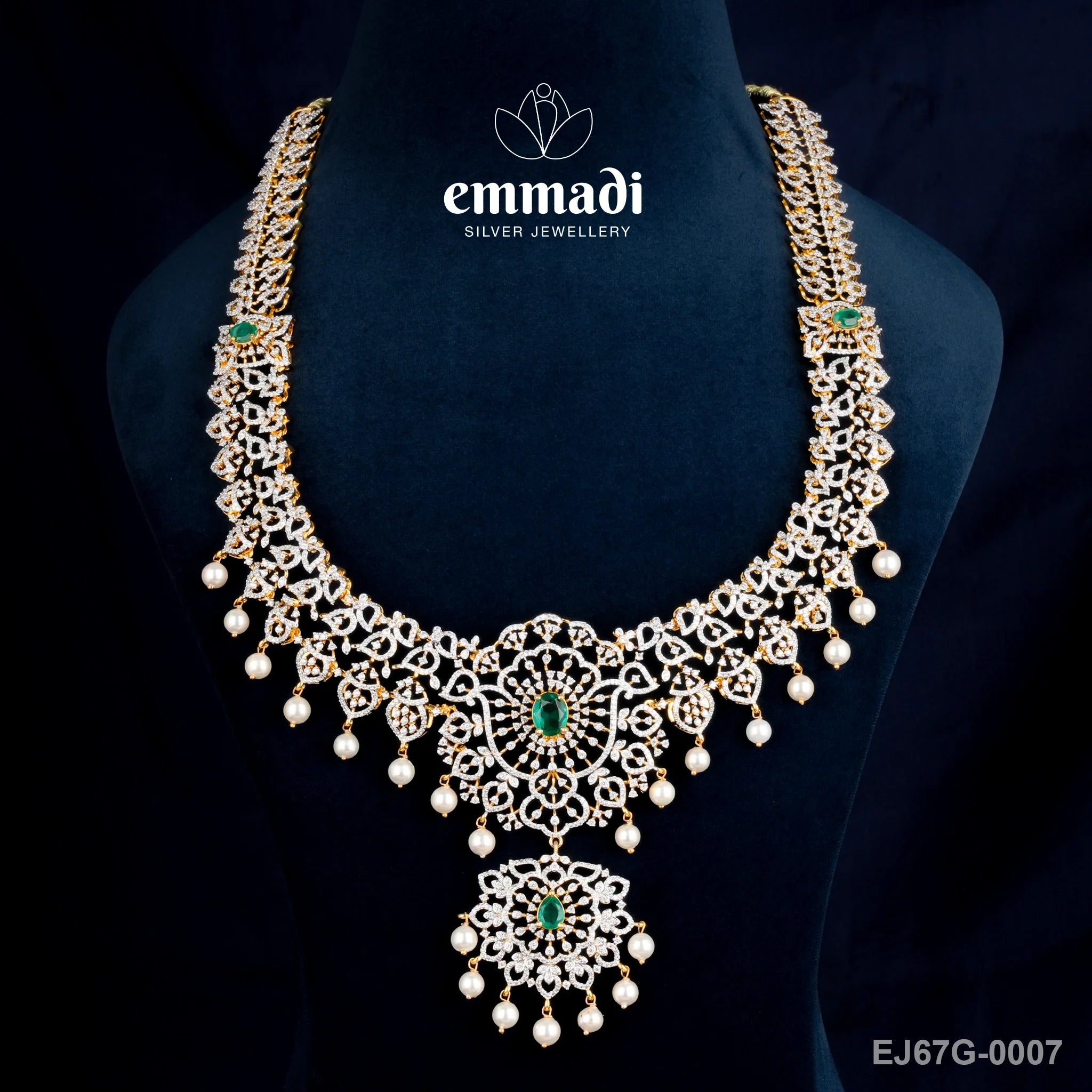 Experience the luxury of Indian jewellery with Chandra's Exquisite CZ Green Long Necklace and elevate your style to new heights.
