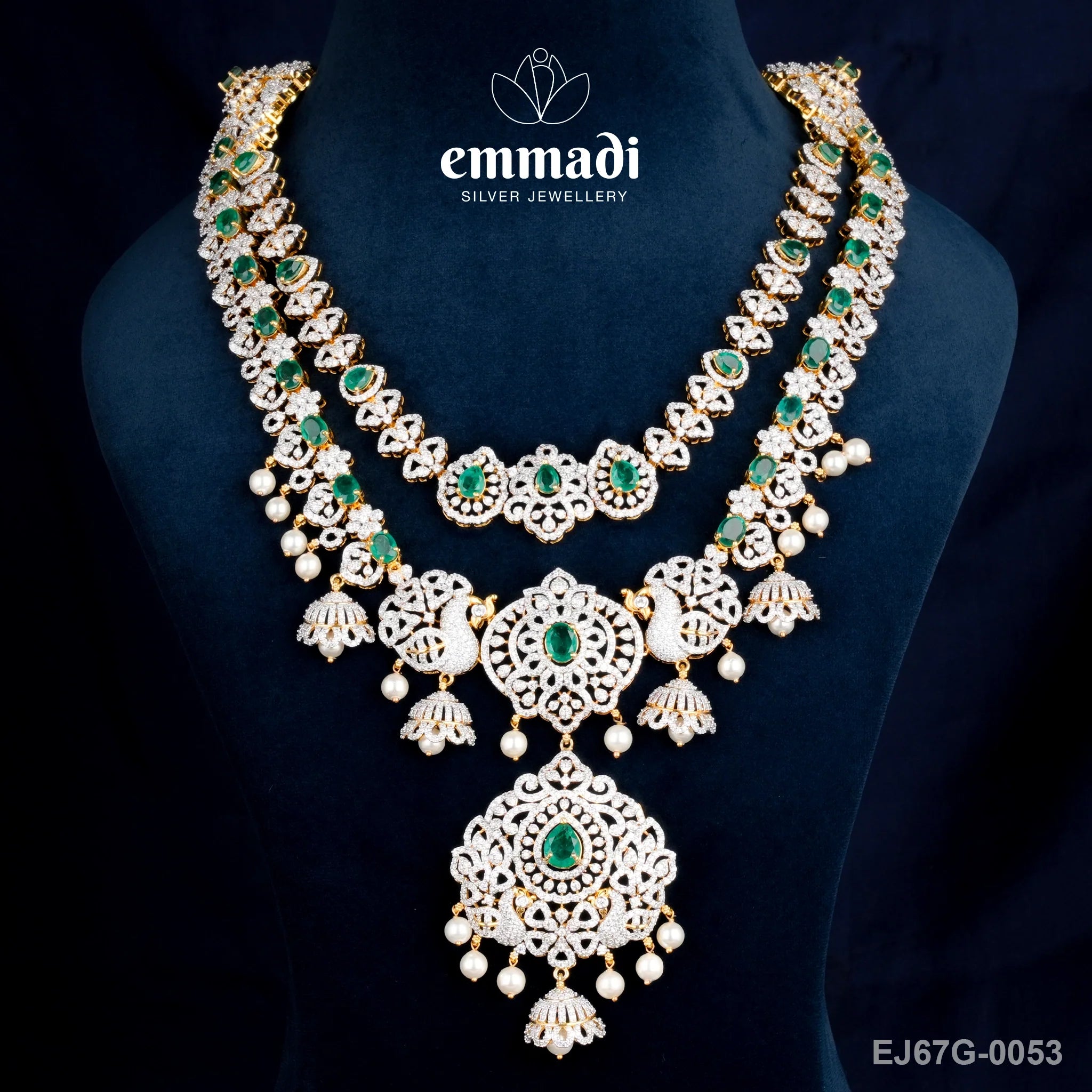 The focal point of this necklace is the breathtaking green CZ stone that is meticulously cut and faceted to perfection, capturing the light and radiating a brilliant sparkle. The traditional Indian design is enhanced by the use of pure gold plating, adding a touch of luxury and opulence to the piece. Crafted from pure 92.5 sterling silver, this necklace is not only beautiful but also durable and long-lasting.