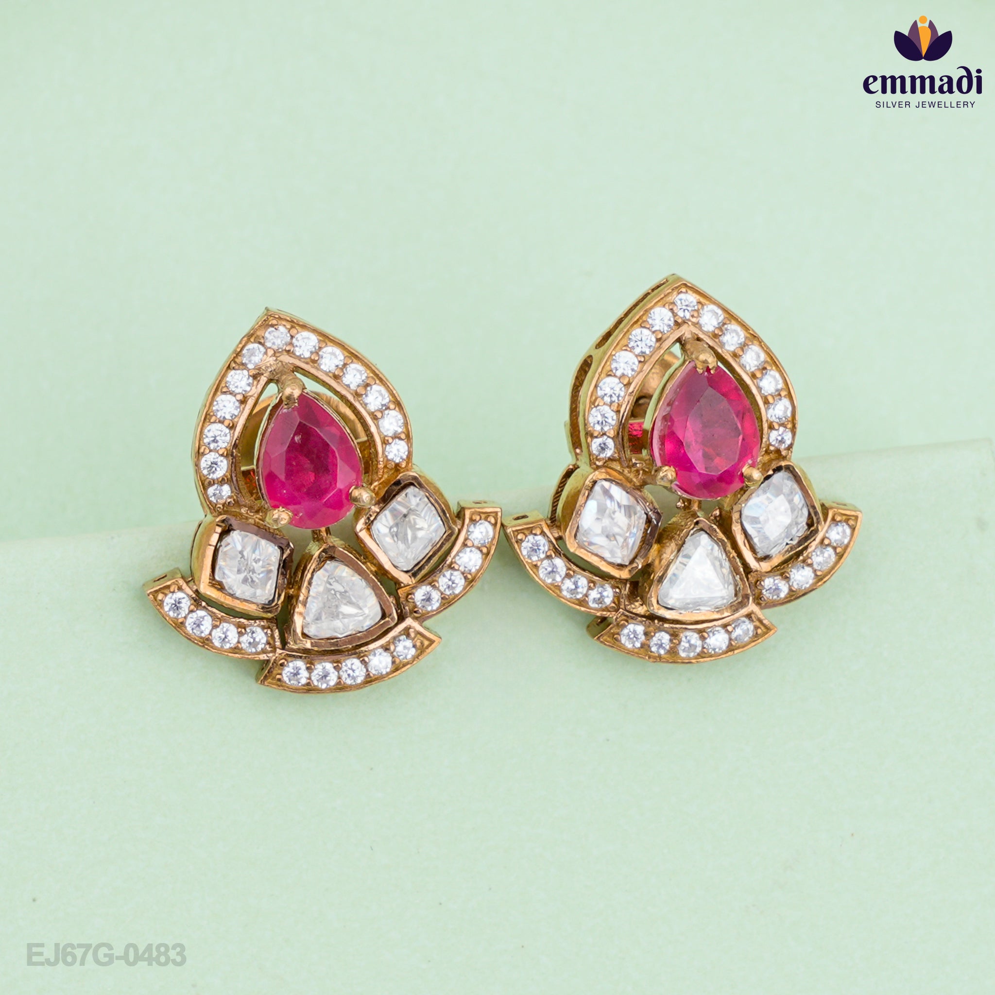 Introducing the Niharika Pink Victorian Studs, a stunning addition to any jewelry collection. These exquisite earrings elegantly embody the charm of Victorian design, offering a perfect blend of timeless aesthetics and modern flair. Crafted with meticulous attention to detail, these studs make a bold statement while remaining effortlessly versatile—a perfect accessory for any occasion.