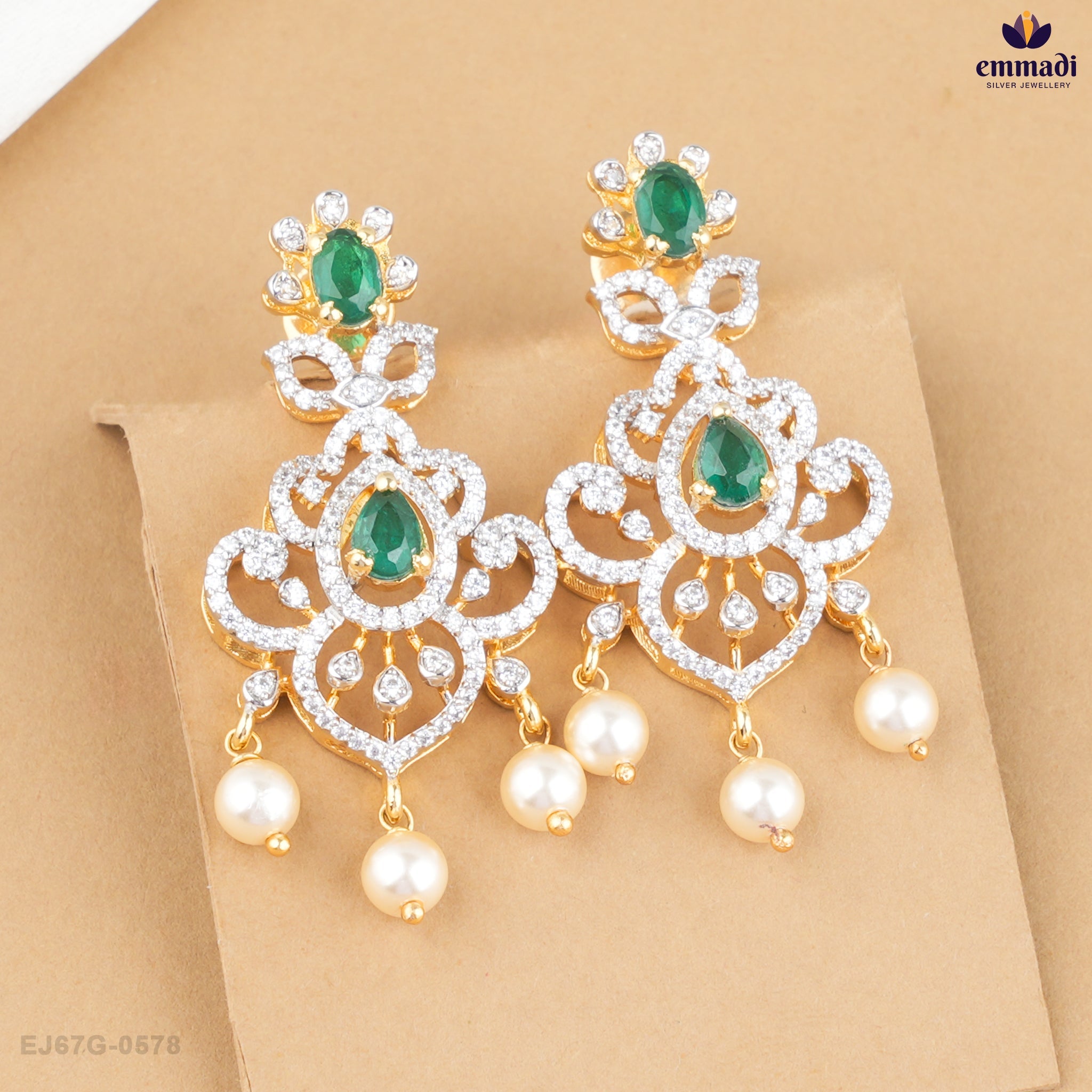 Introducing the exquisite ABHIDHYA Premium Green CZ Hangings, a statement piece designed to elevate your jewellery collection. Crafted with precision, these hangings showcase a stunning array of cubic zirconia (CZ) stones, radiating elegance and sophistication. The deep, rich green hue of the CZ stones adds a touch of luxury, making them perfect for both everyday wear and special occasions.
