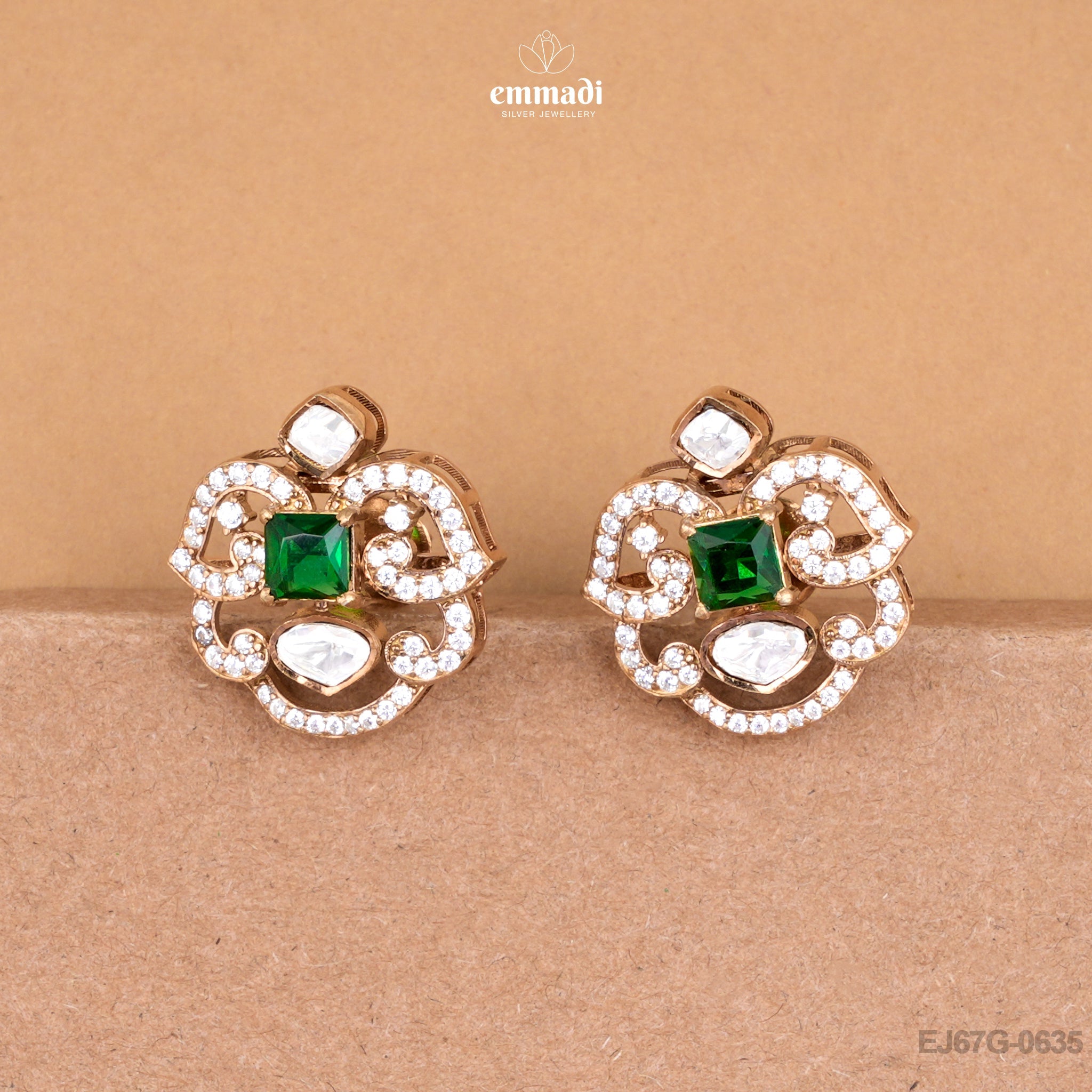 Elevate your elegance with our Chahat Victorian Green Silver Studs, a true embodiment of timeless artistry and modern flair. These exquisite earrings draw inspiration from the intricate designs of the Victorian era, seamlessly blending classic aesthetics with contemporary trends.