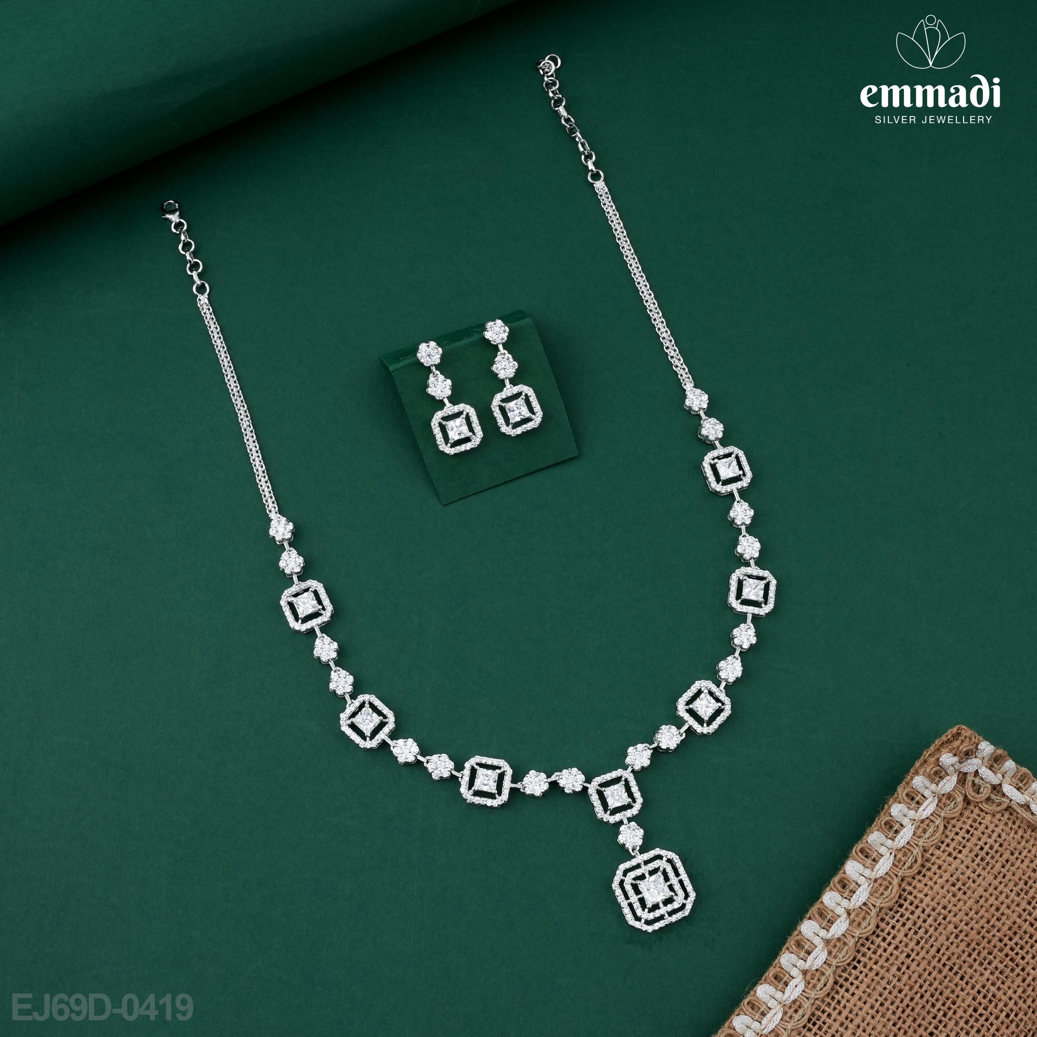 Introducing the exquisite Reena White Premium CZ Necklace, a stunning accessory that combines elegance with luxurious craftsmanship. Handcrafted with meticulous attention to detail, this necklace showcases the brilliance of high-quality cubic zirconia stones, radiating sophistication and charm. The brilliant white stones are brilliantly set against a backdrop of pure 92.5 silver, providing a striking contrast that enhances their sparkle.