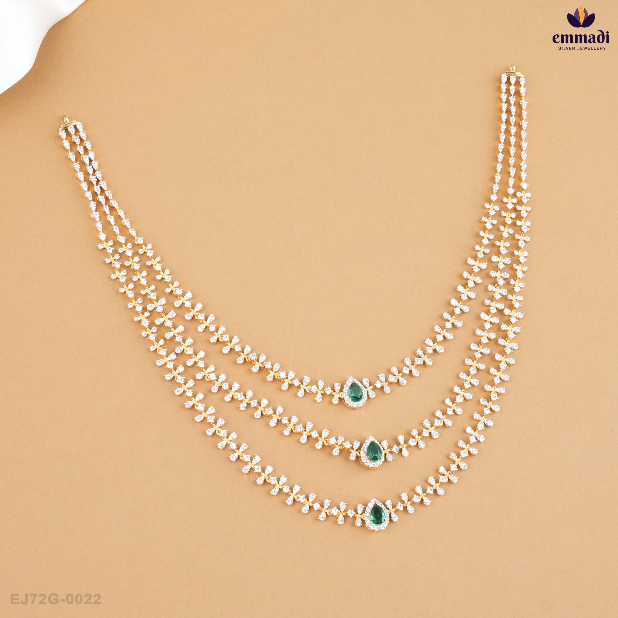 Introducing the exquisite ADARSHA Premium Green CZ Necklace, a true embodiment of elegance and sophistication. Crafted with remarkable attention to detail, this necklace features a stunning center stone made of high-quality cubic zirconia in an enchanting shade of green, designed to capture the light in a dance of brilliance.